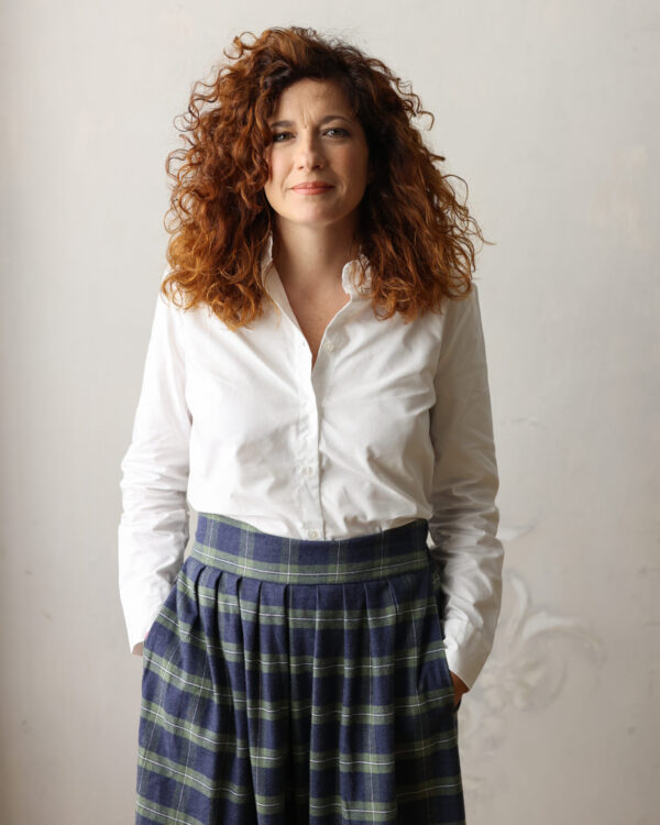 Gonna Lunga Bussola – flanella blu quadri ciliegia