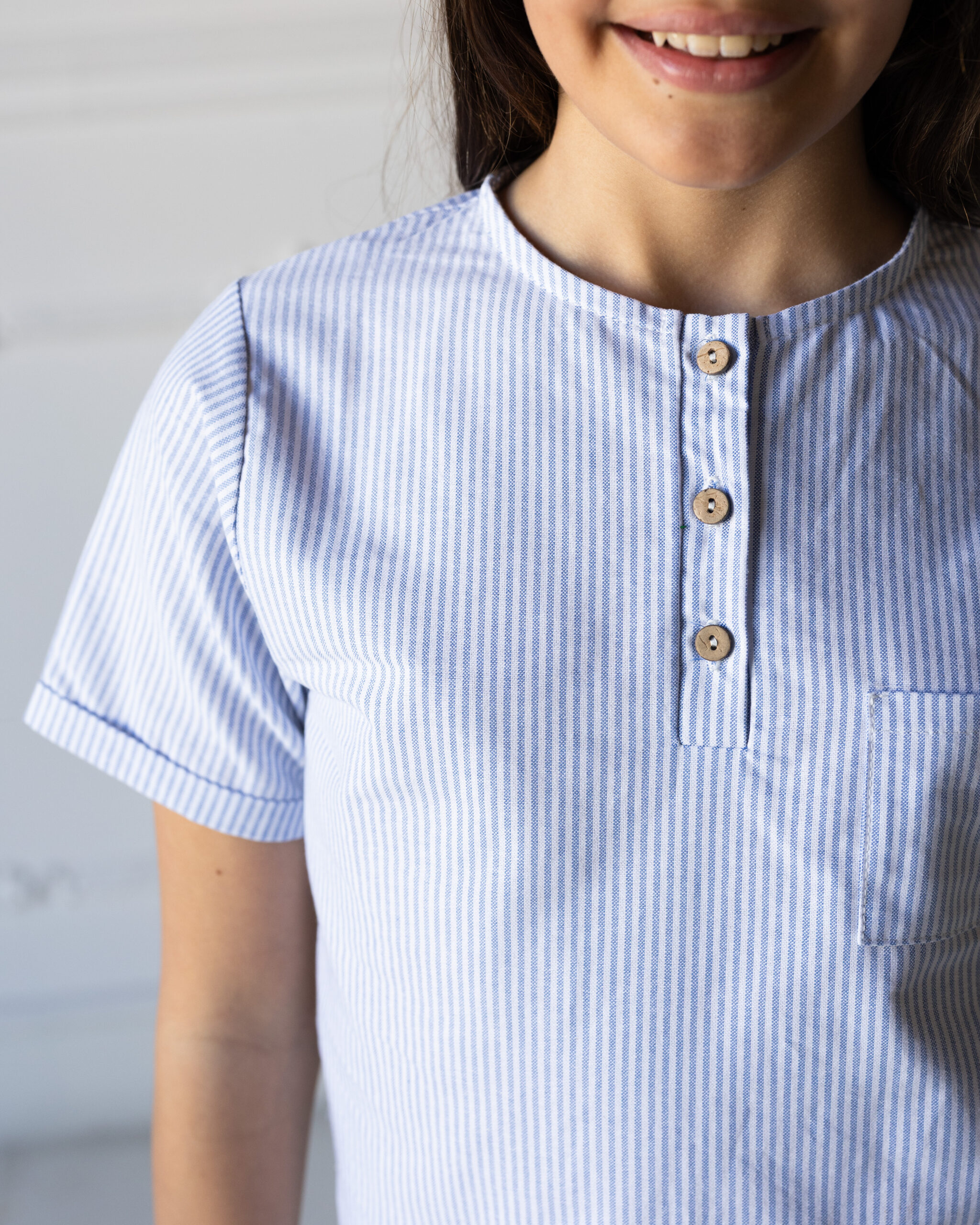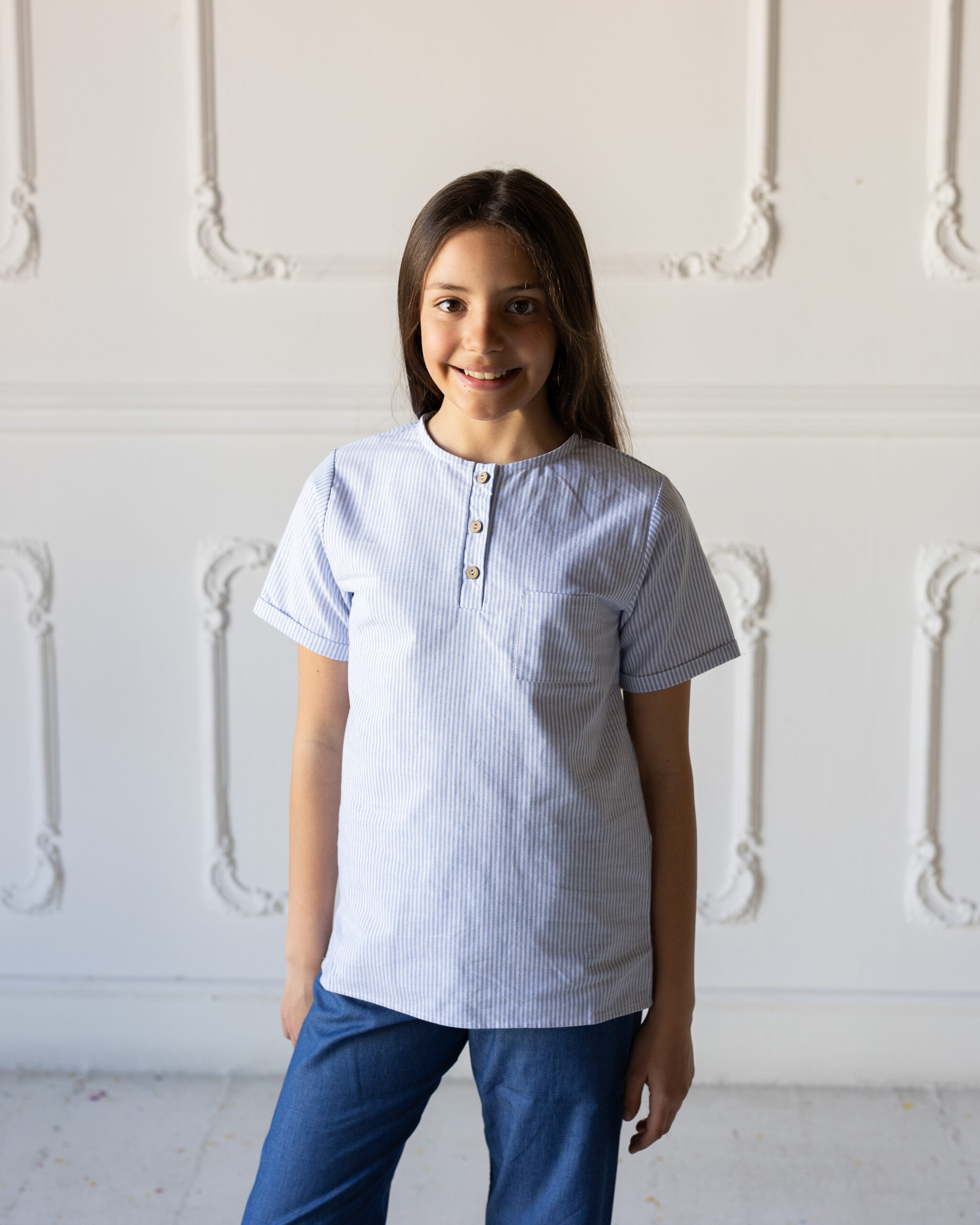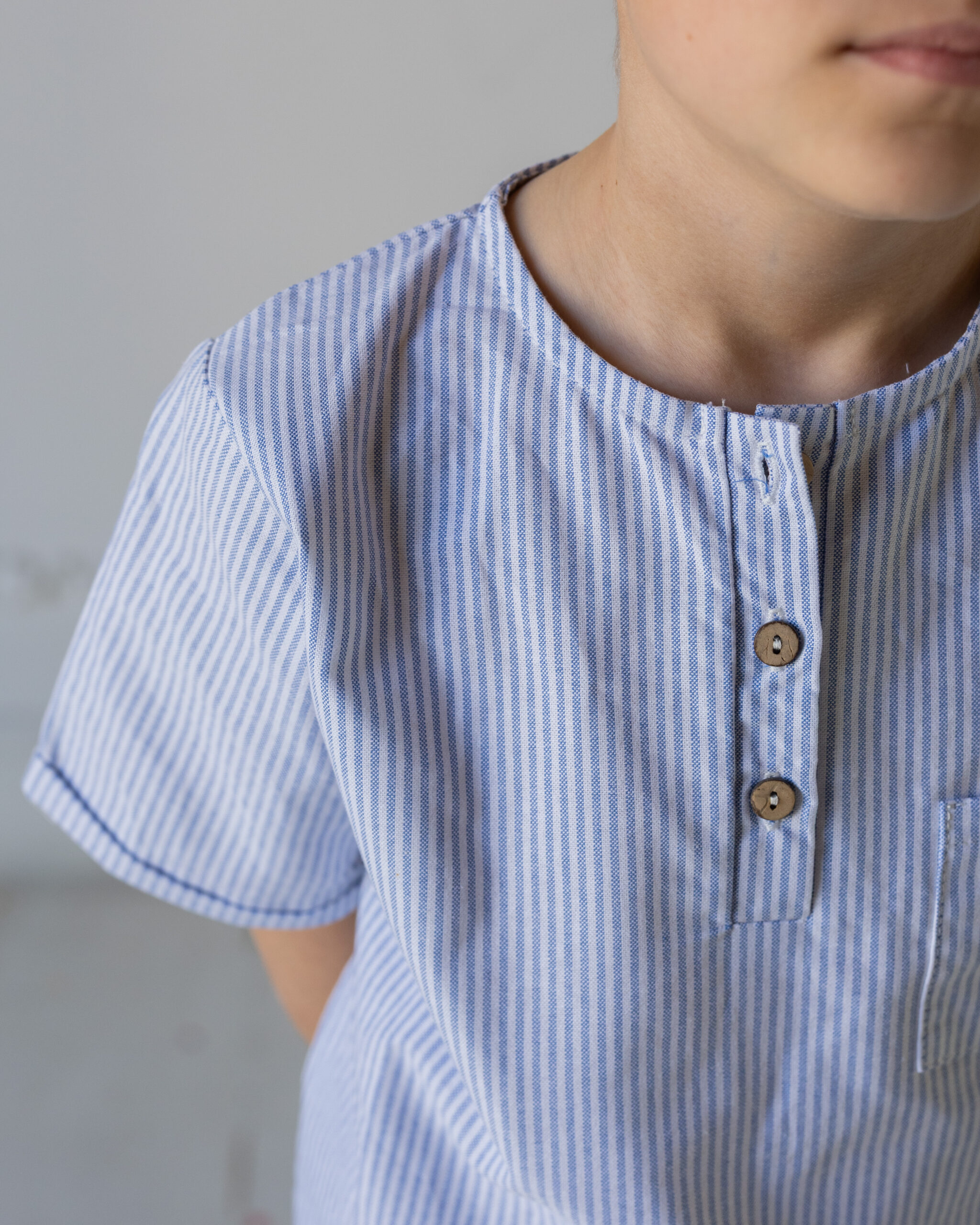 Camicia maniche corte con piccolo risvolto, collo coreana, unisex