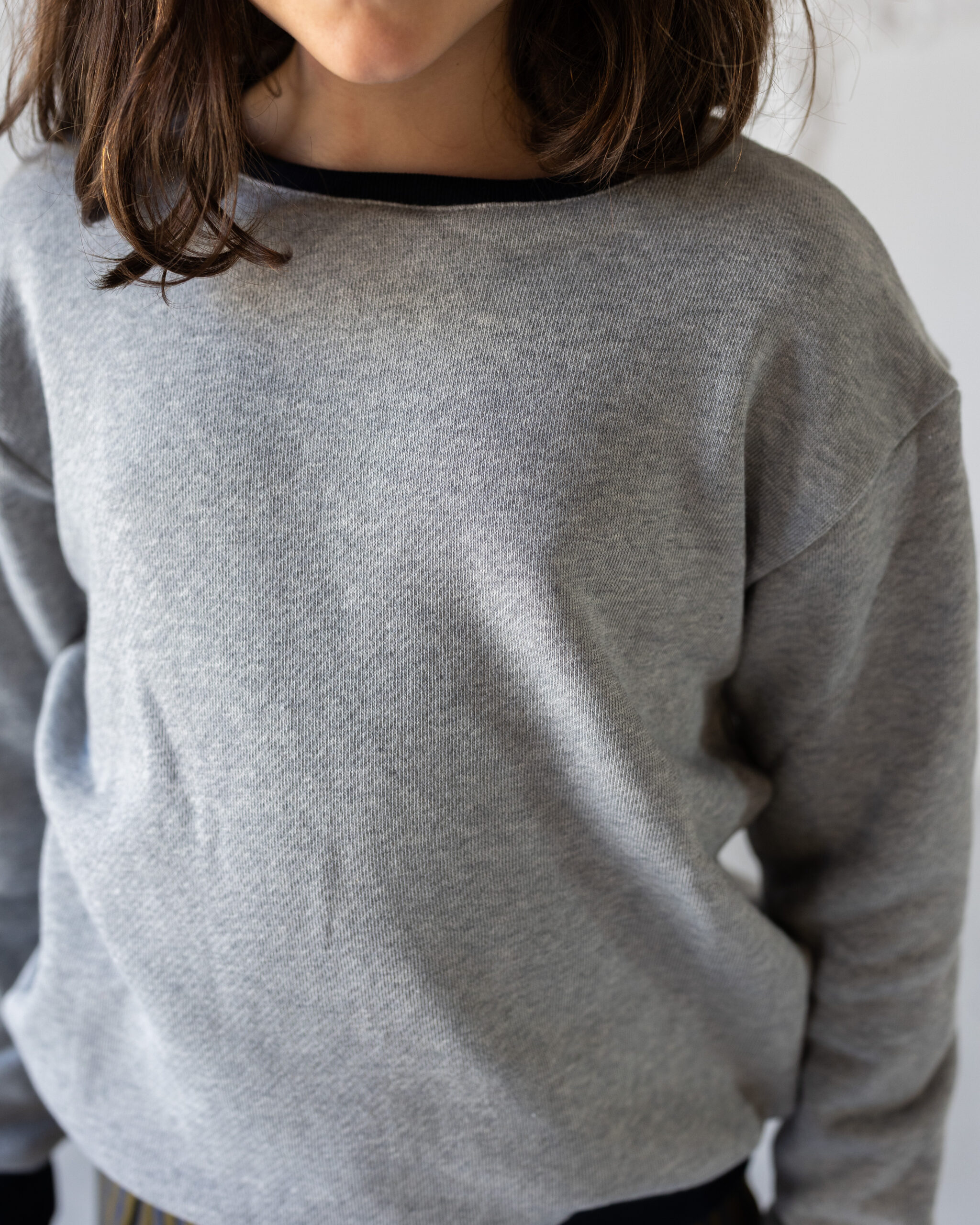 Felpa morbidissima e colorata, girocollo con costina elastica così come polsi e fondo.