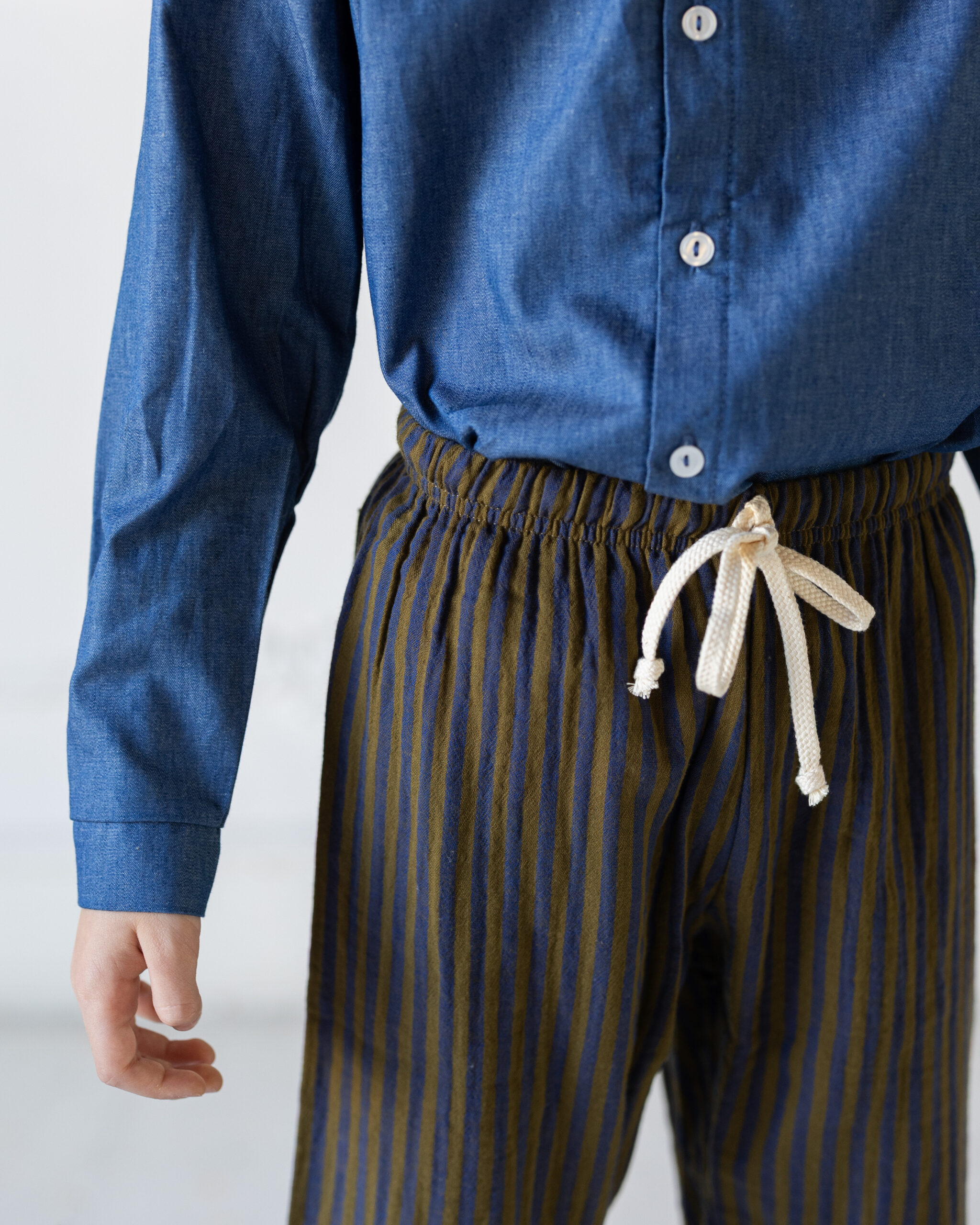 Pantaloni ArgoGarzato Righe Blu E Fango
