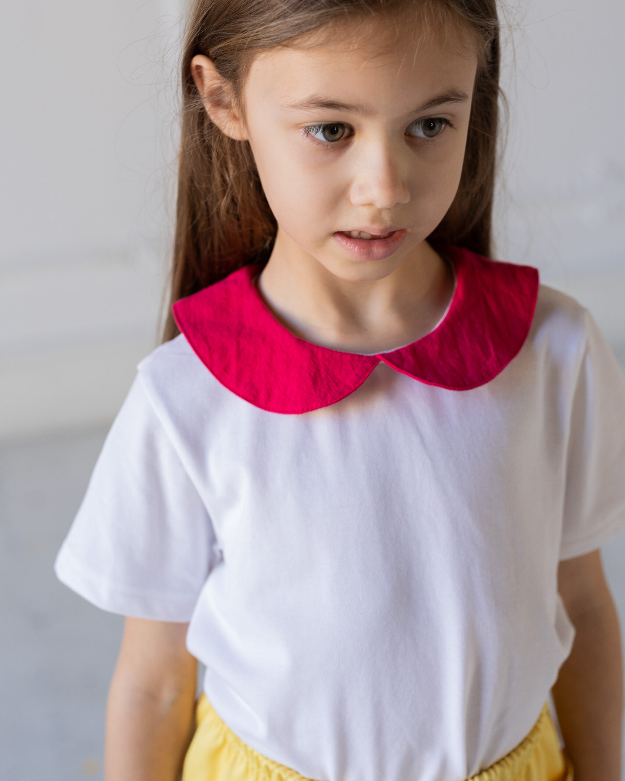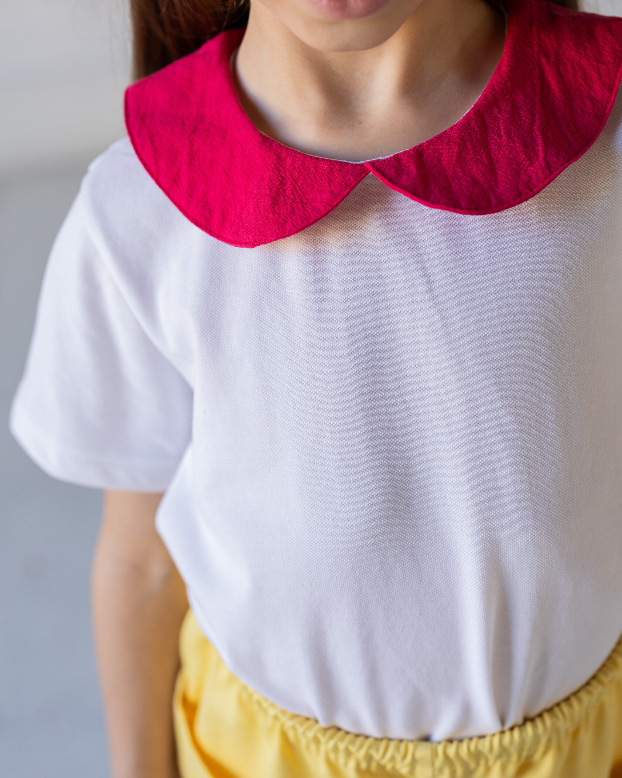 Tshirt in cotone piquet con colletto a contrasto. Da abbinare a tutta la collezione. Bellissima anche sotto cardigan, felpe e golfini