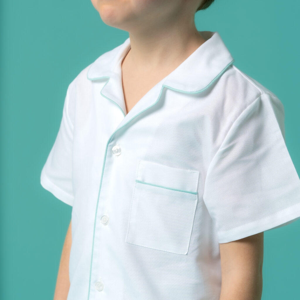 La viscosa 100% risulta perfetta per camicette estive fresche per bambina e bambino, come la deliziosa Camicia La Vela, perfetta da coordinare con la camicia di mamma.