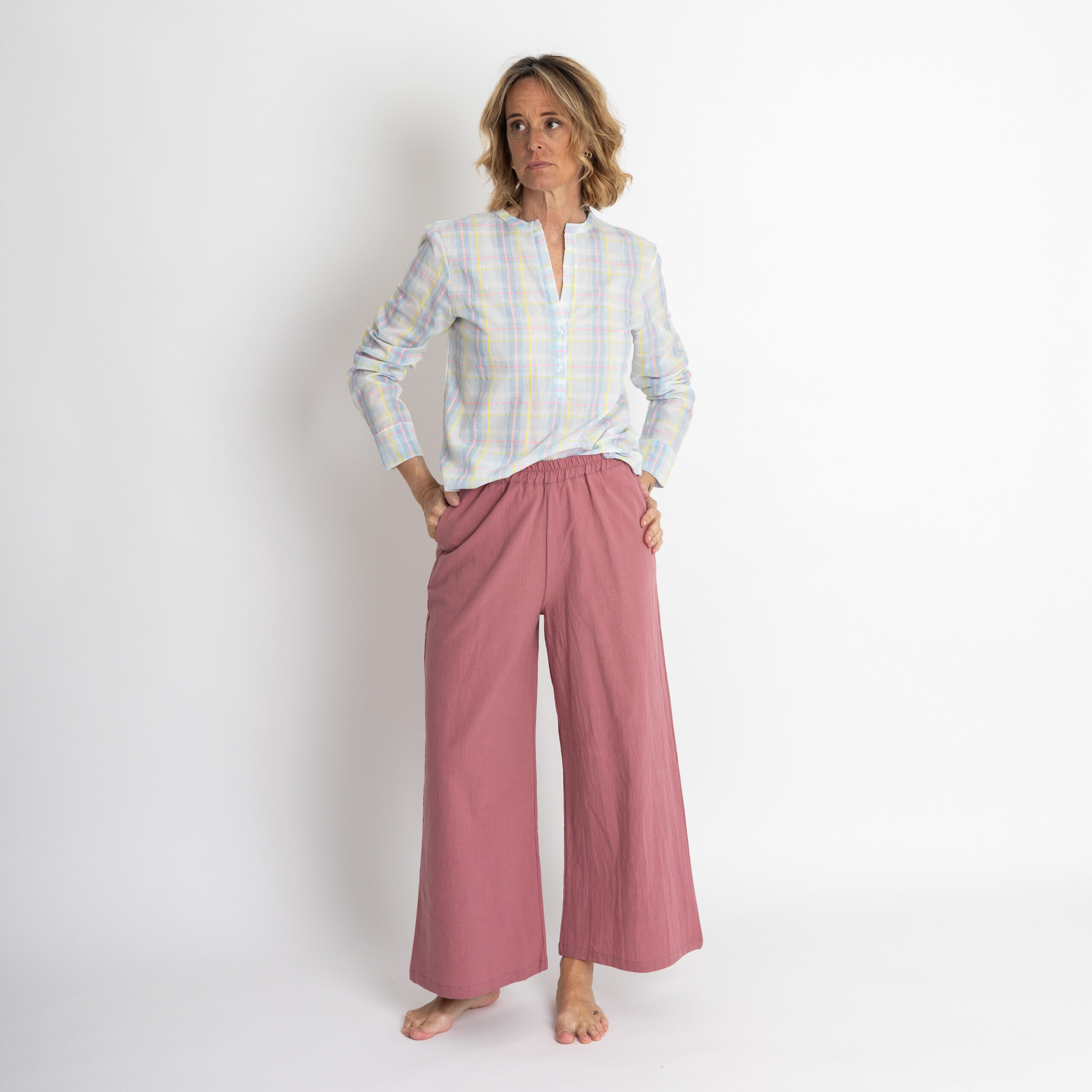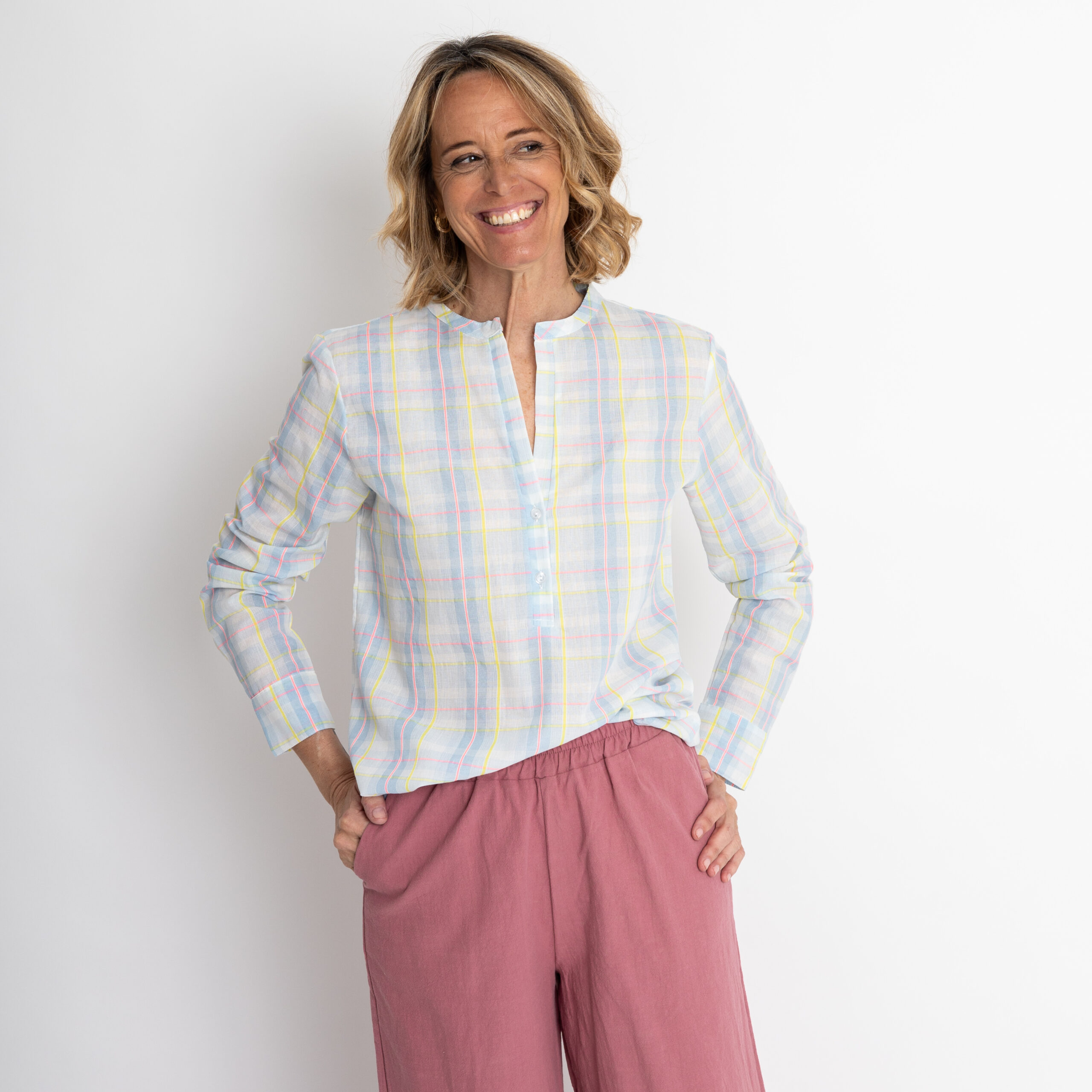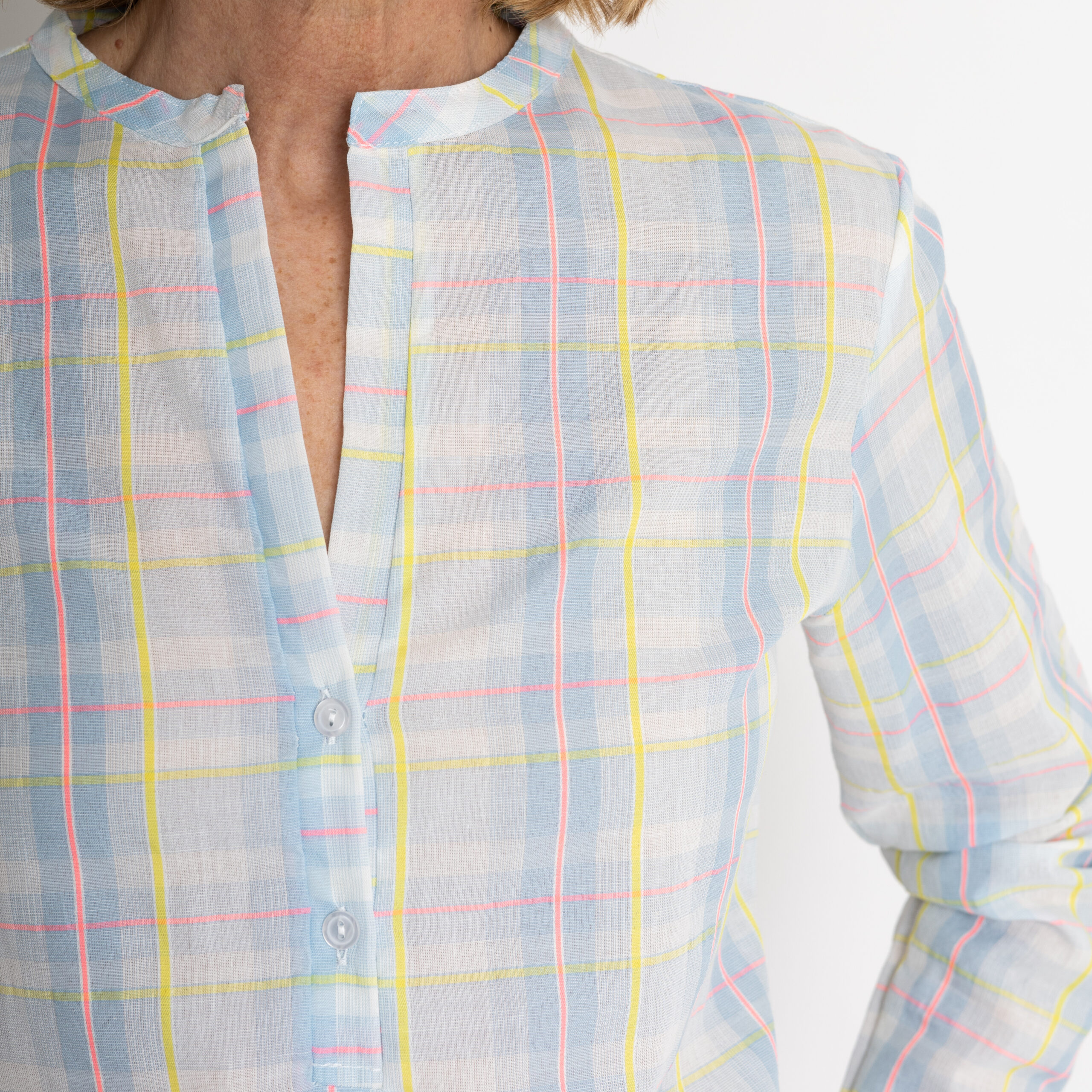 Da grandi amanti delle camicie proponiamo un nuovo modello: Amata con uno scollo particolare, a “V” e due bottoncini.