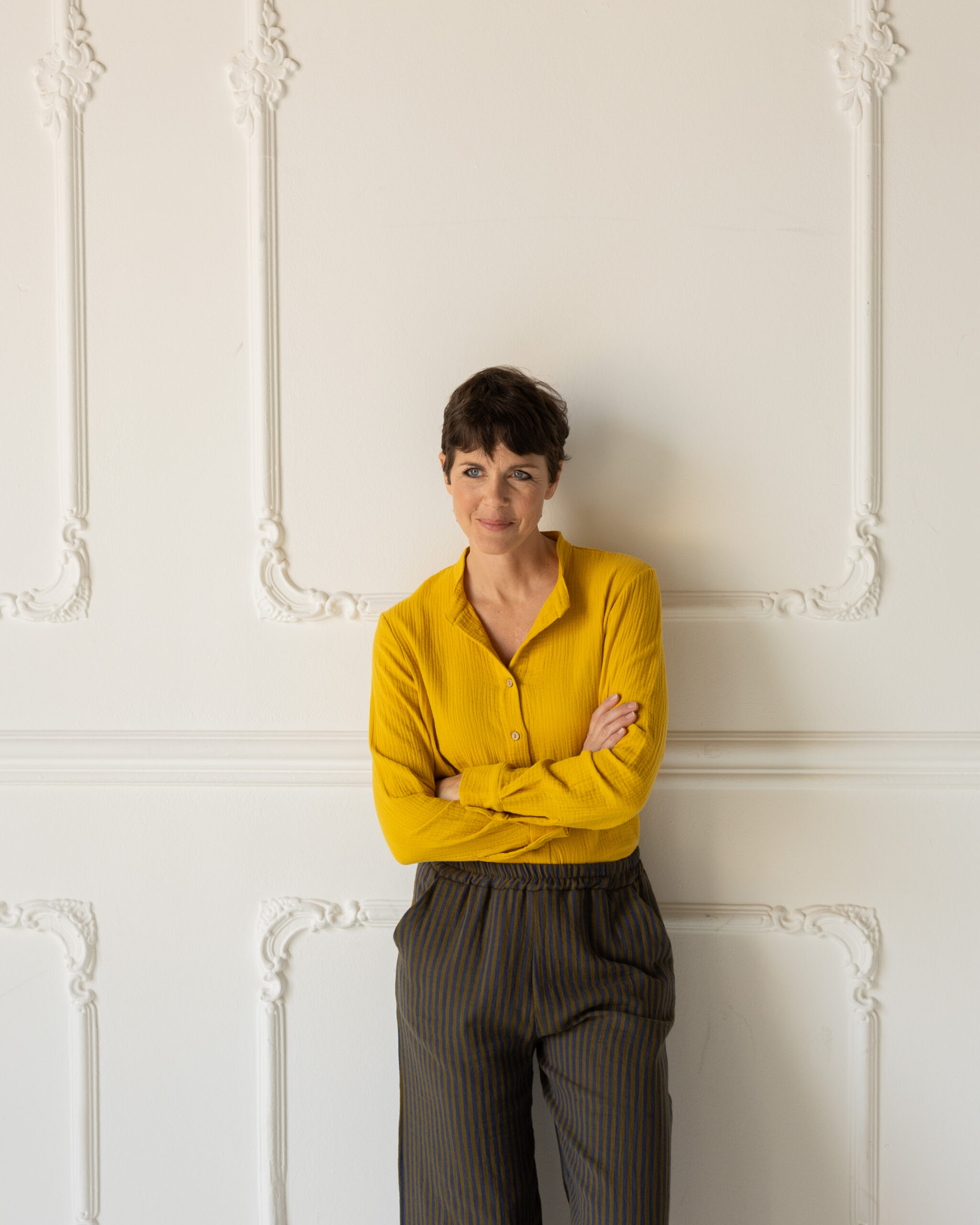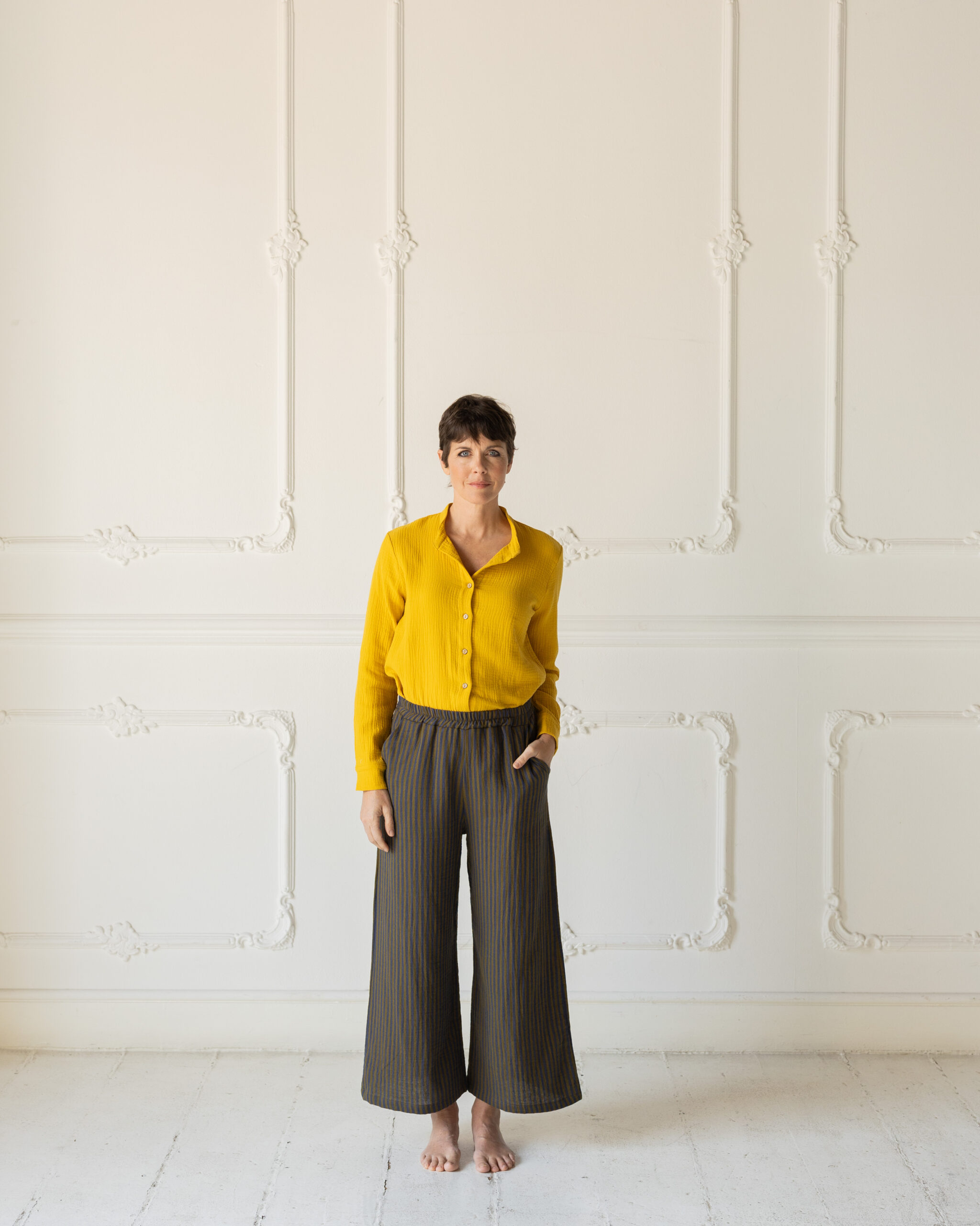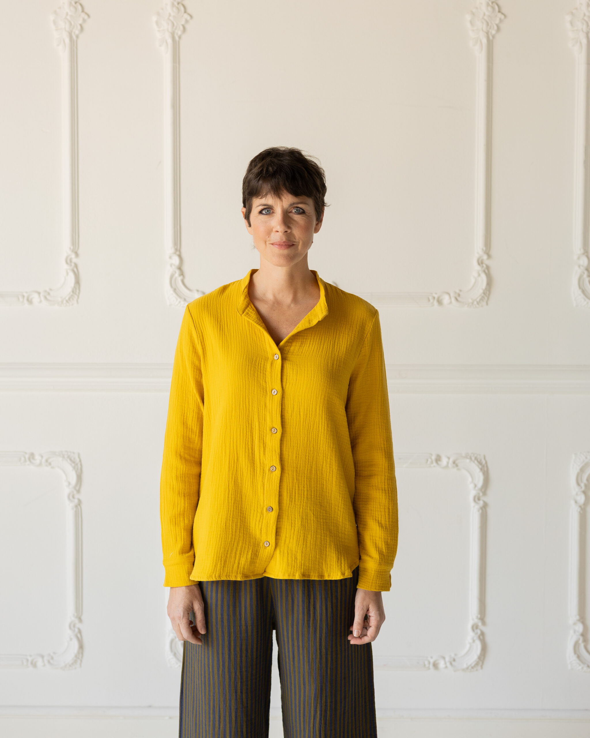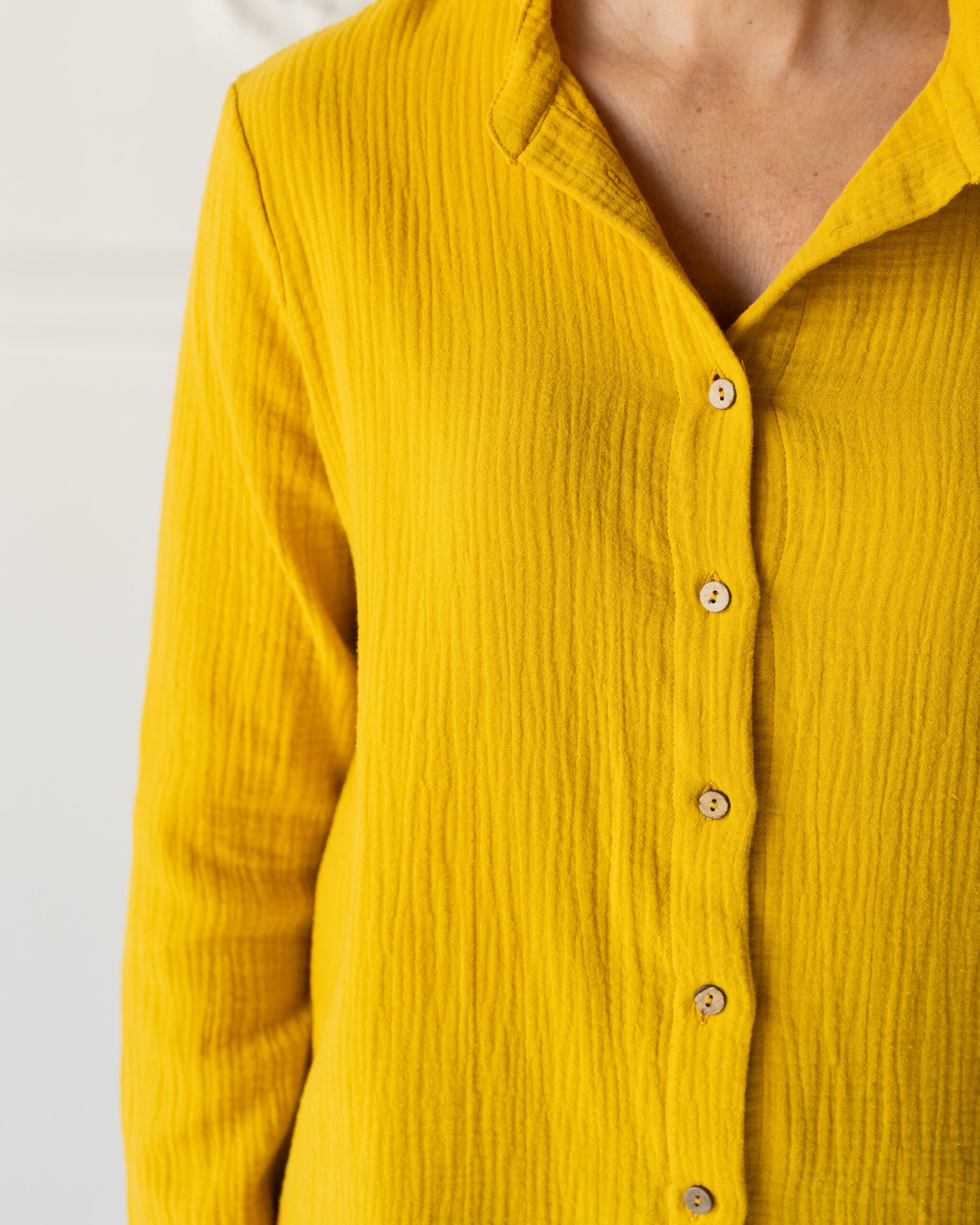 Camicia coreana dalla forma dritta e versatile. Da portare anche aperta con sotto un top.