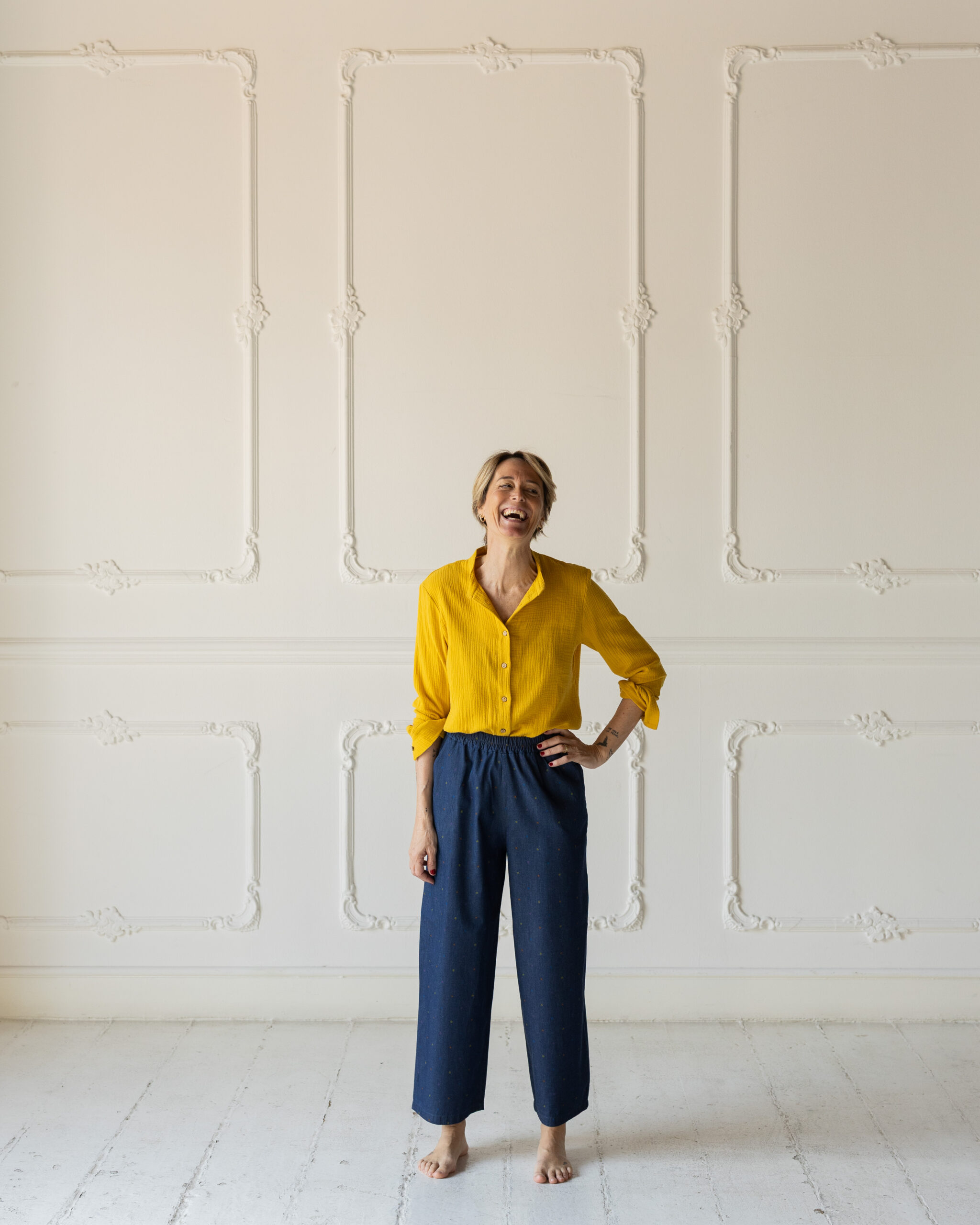 La rivisitazione del nostro classico crop ma in forma più classica. Più lungo di 4 cm e gamba più dritta. Ha sempre elastico in vita e la vestibilità è come il crop classico.