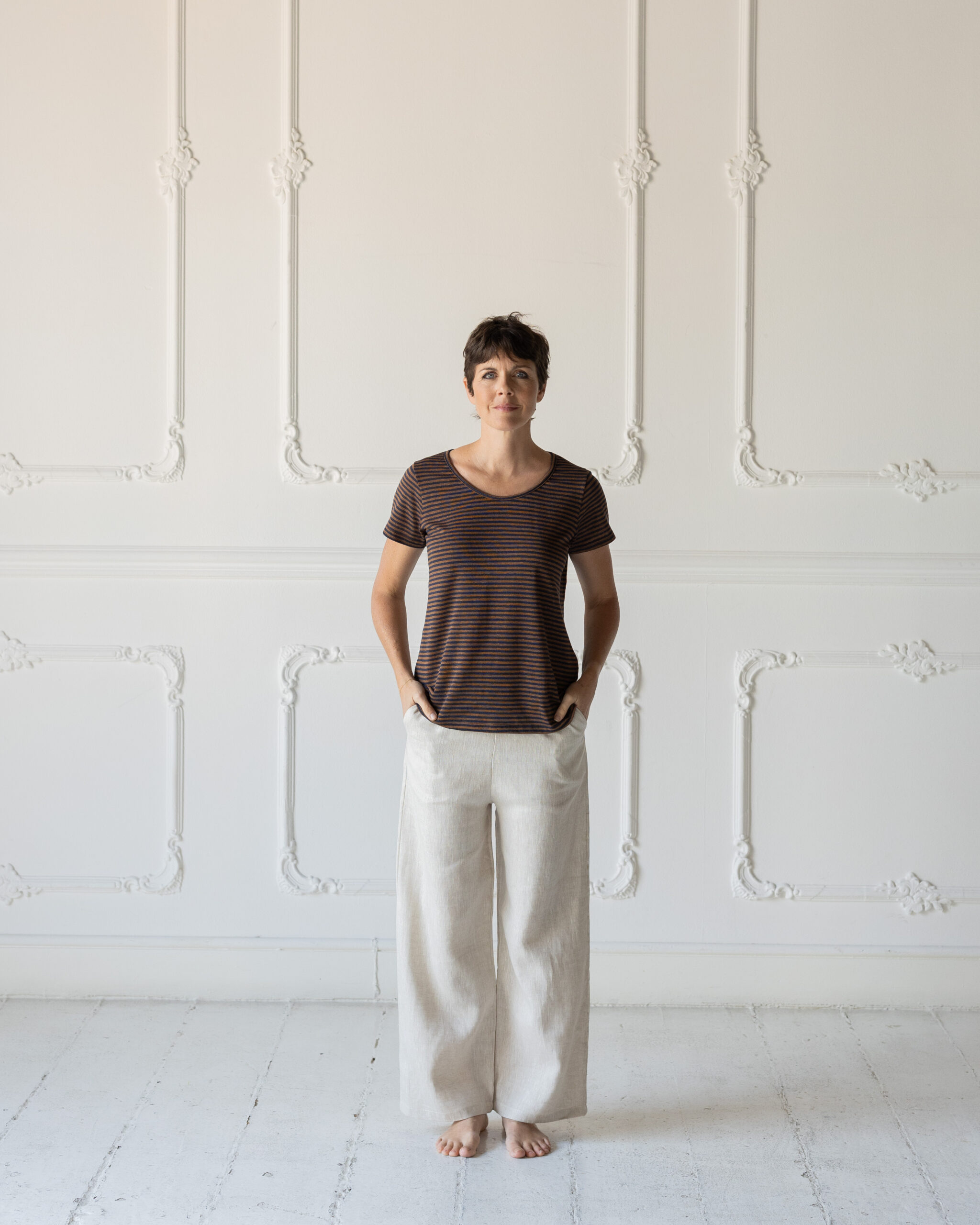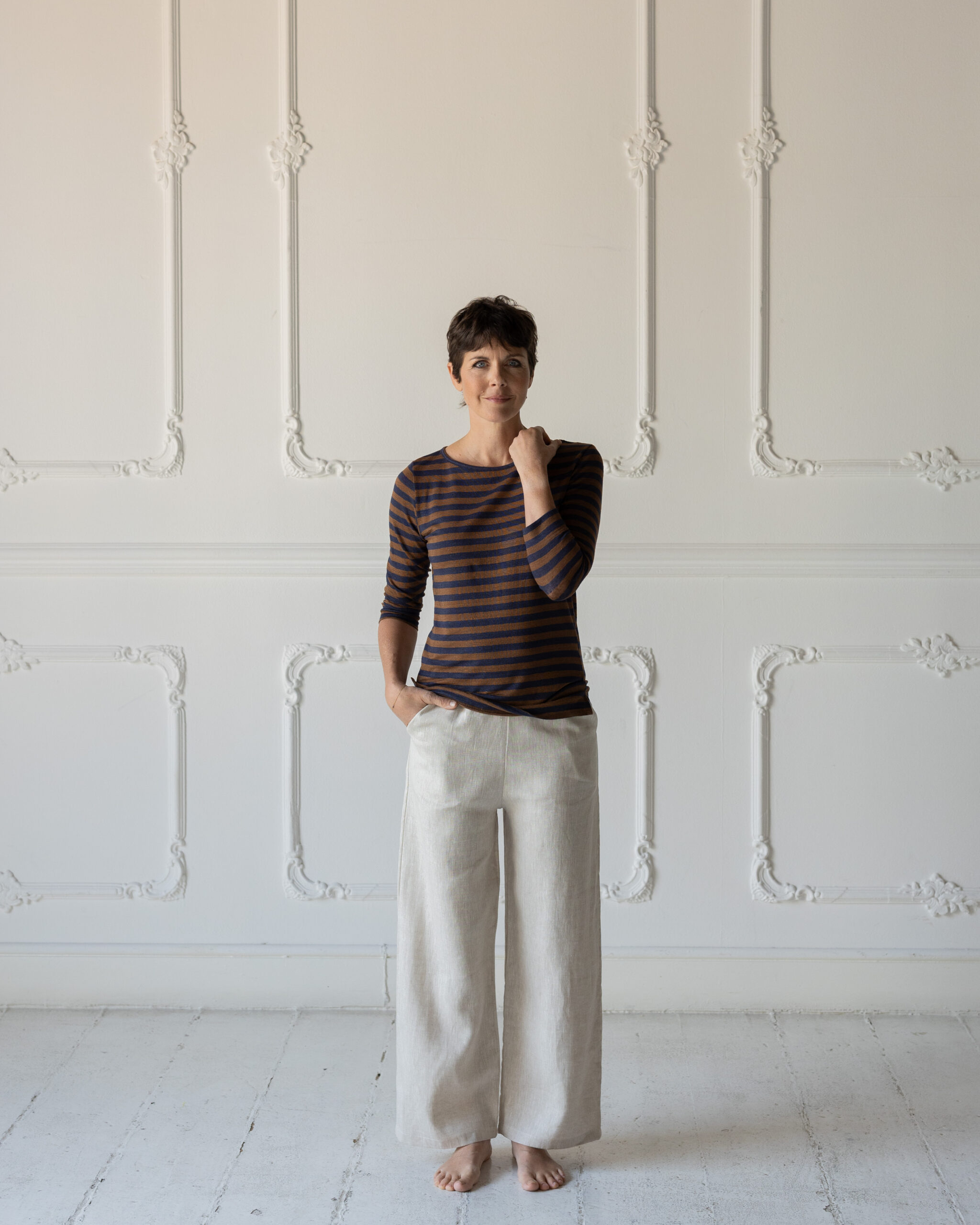 La rivisitazione del nostro classico crop ma in forma più classica. Più lungo di 4 cm e gamba più dritta. Ha sempre elastico in vita e la vestibilità è come il crop classico.