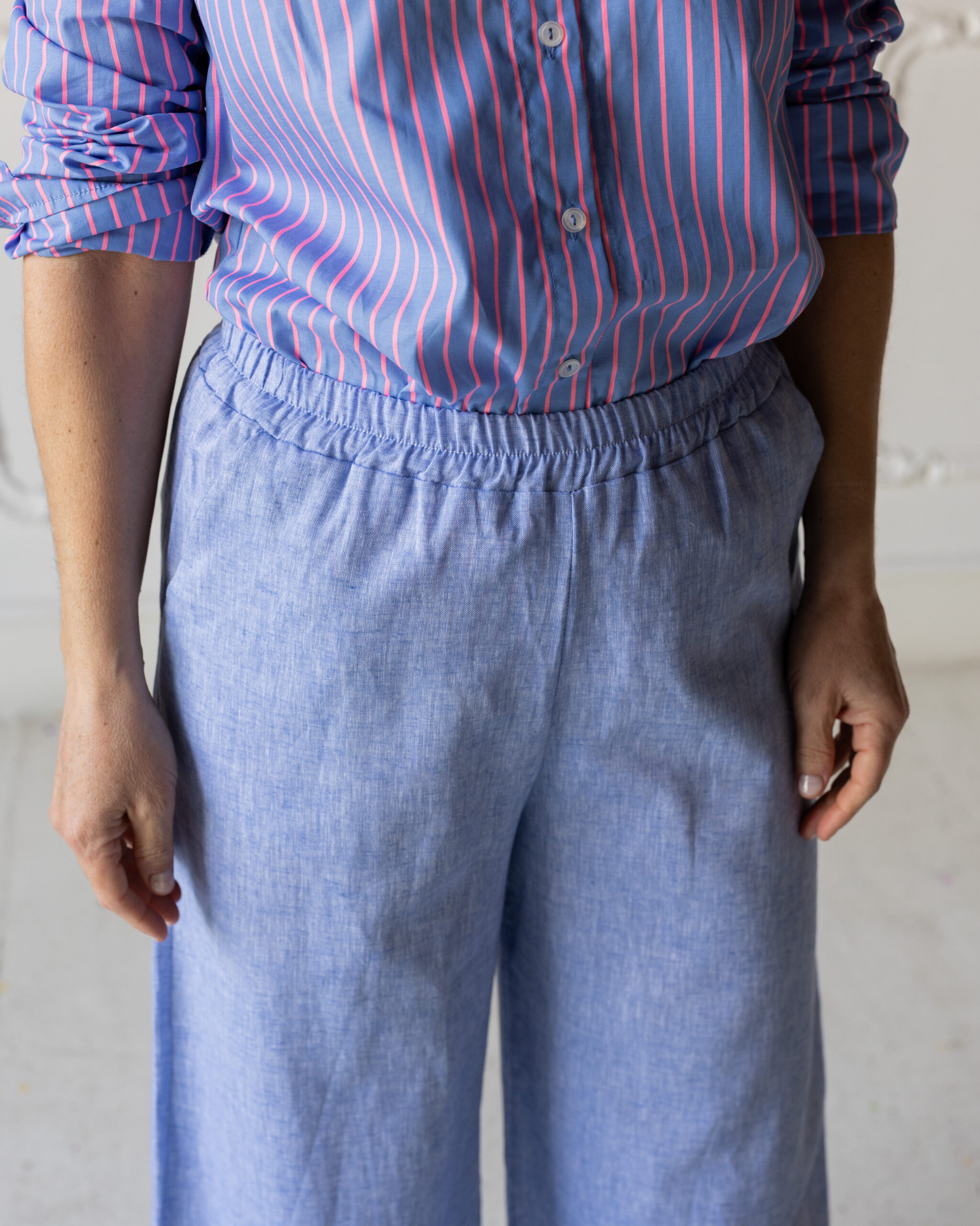 Il crop è un pantalone molto comodo, con elastico in vita e tasche. Ottimo di giorno da indossare con ballerine, sandali o mocassini e perfetto di sera anche con tacchi alti. Da portare rigorosamente 4 dita sopra il malleolo.