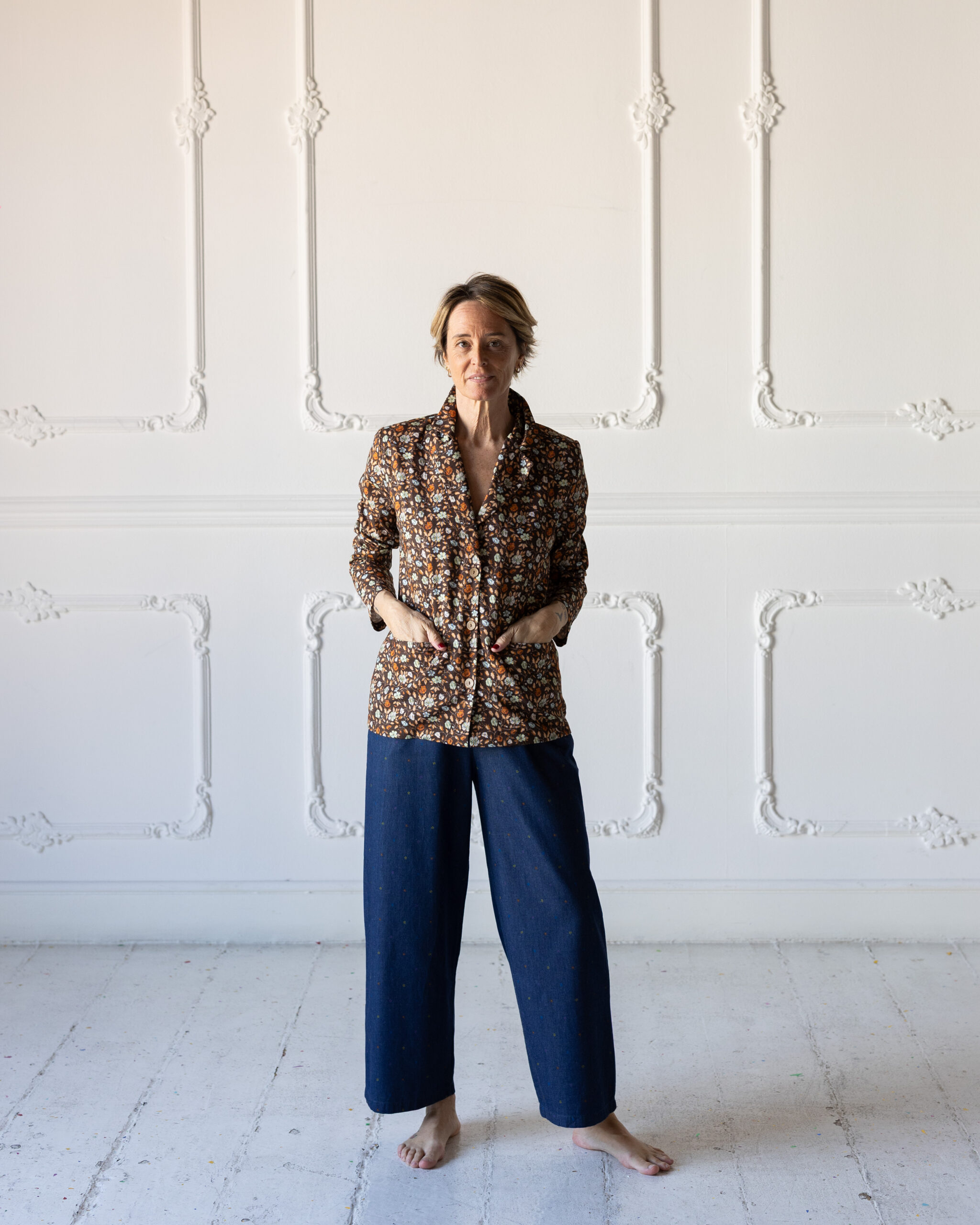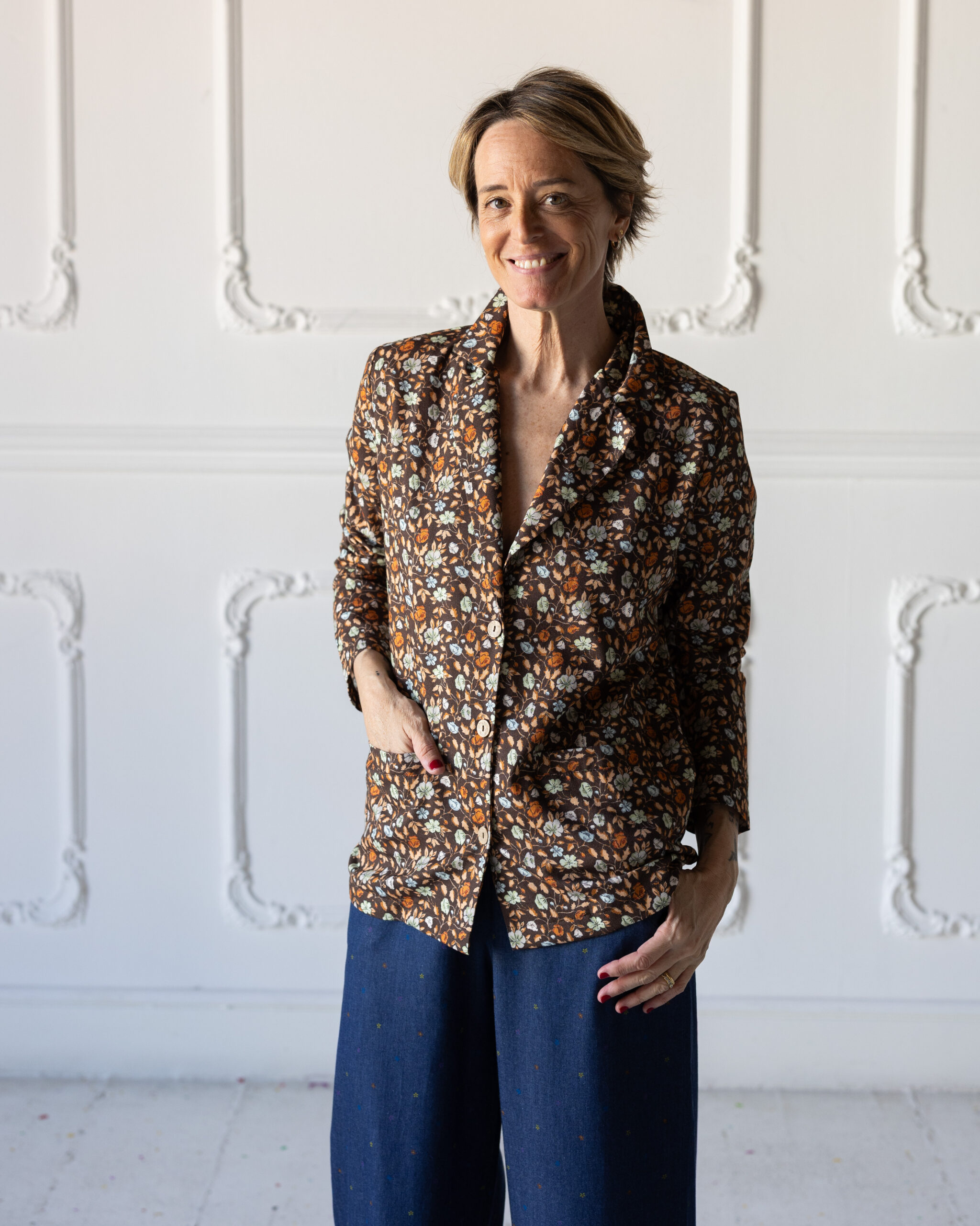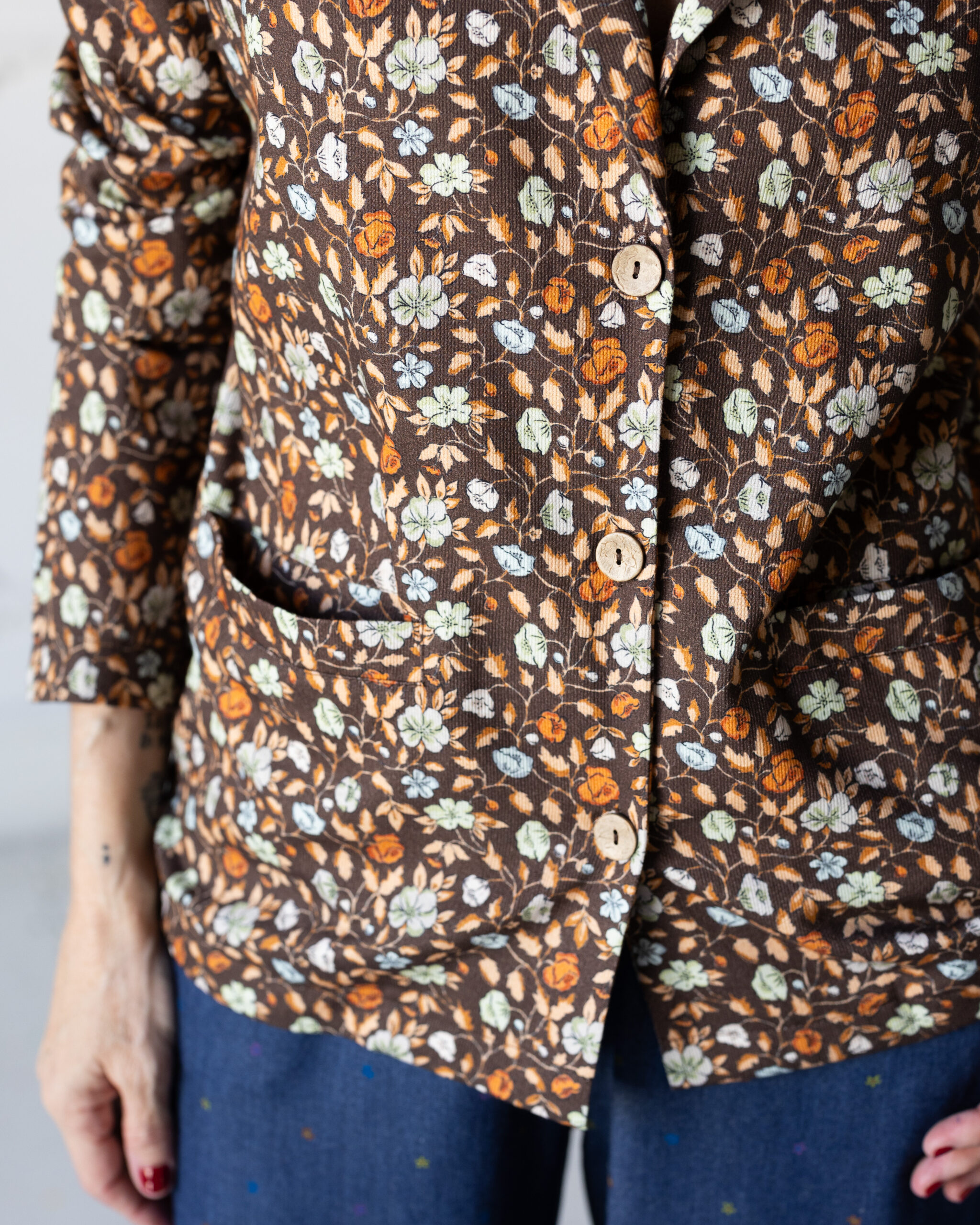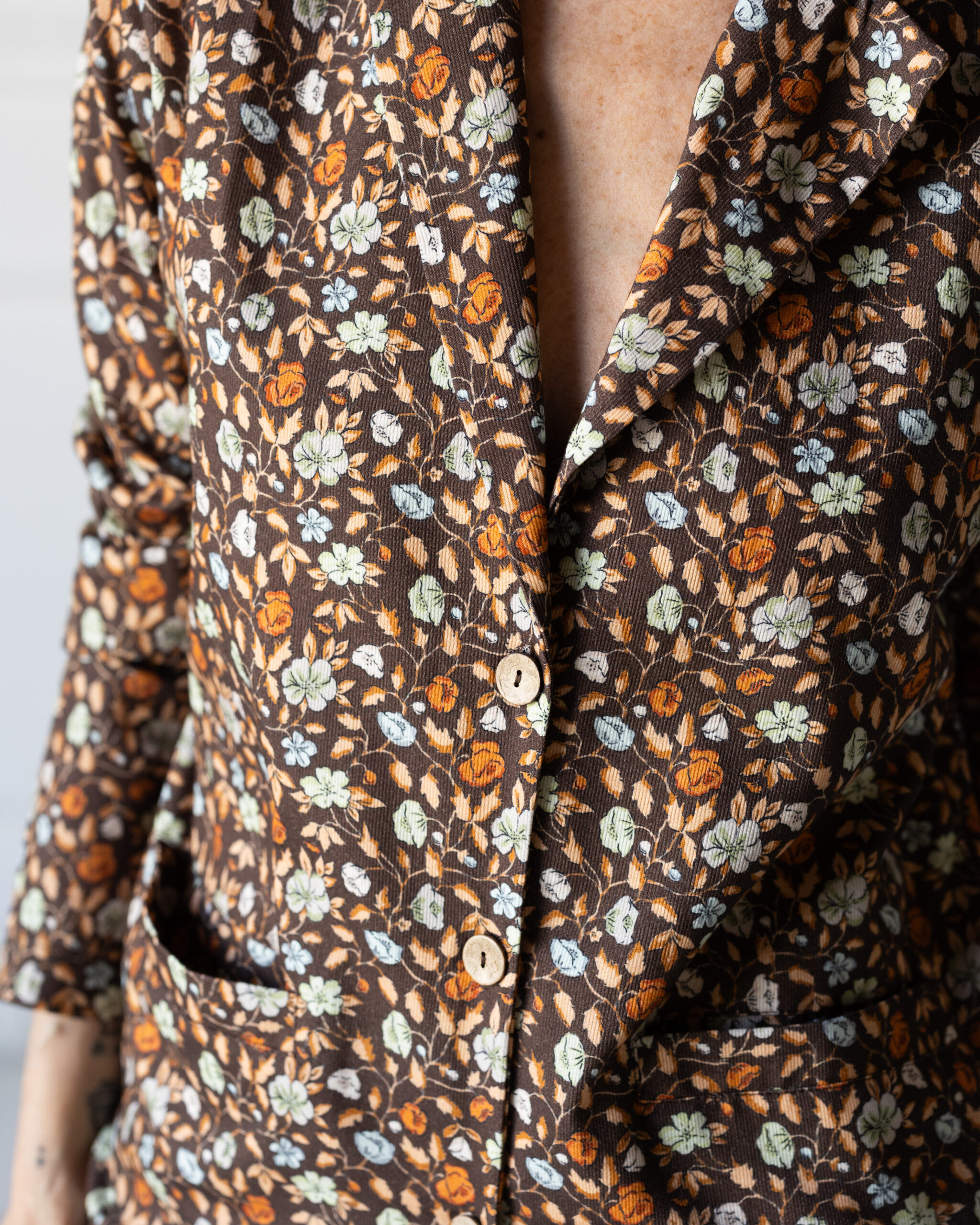 Giacca DelfinaVelluto Millerighe Cacao A Fiori