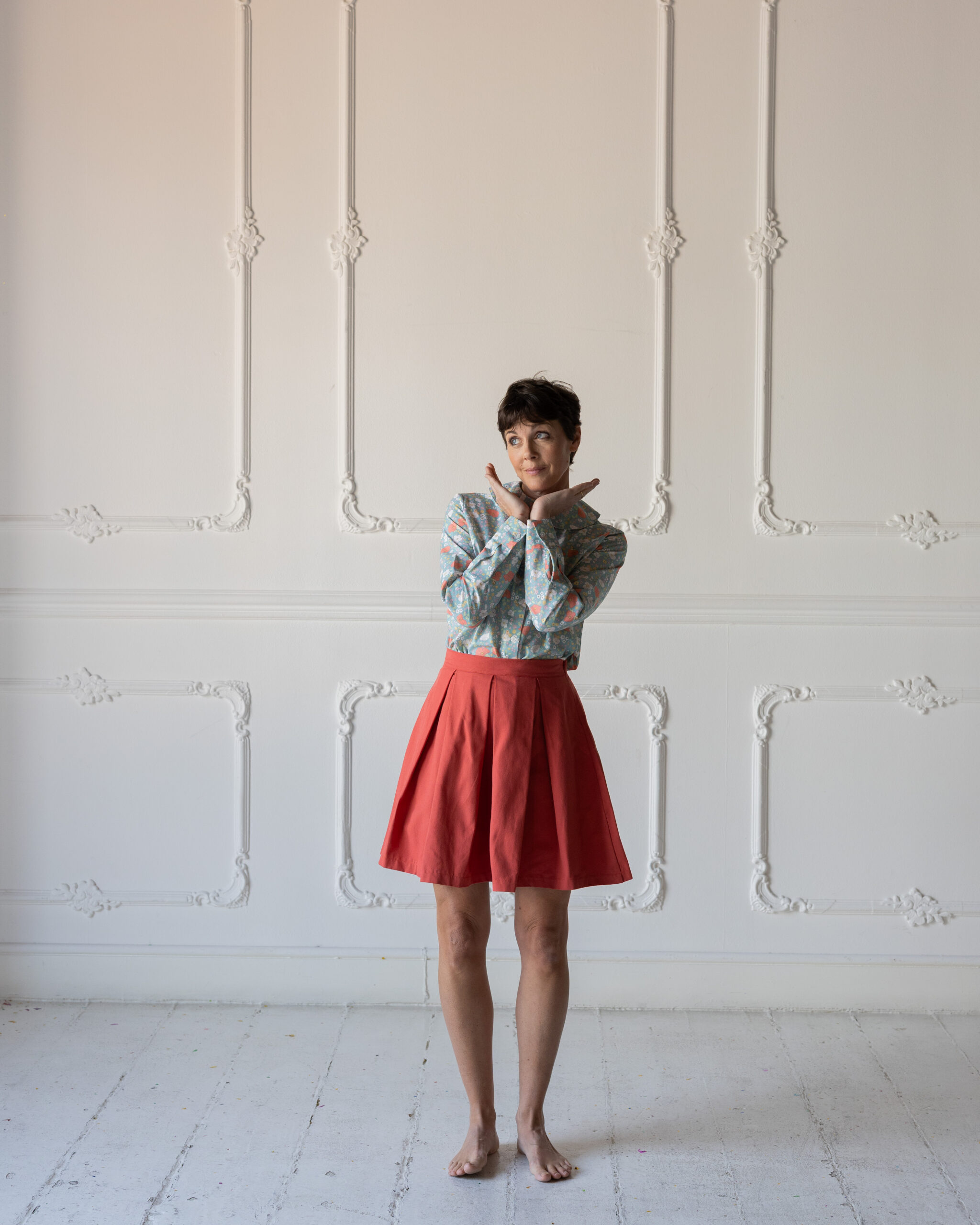 Sarah è alta 174 cm, pesa 56 kg e veste la tg M (l’elastico di questa gonna è un pò più rigido)