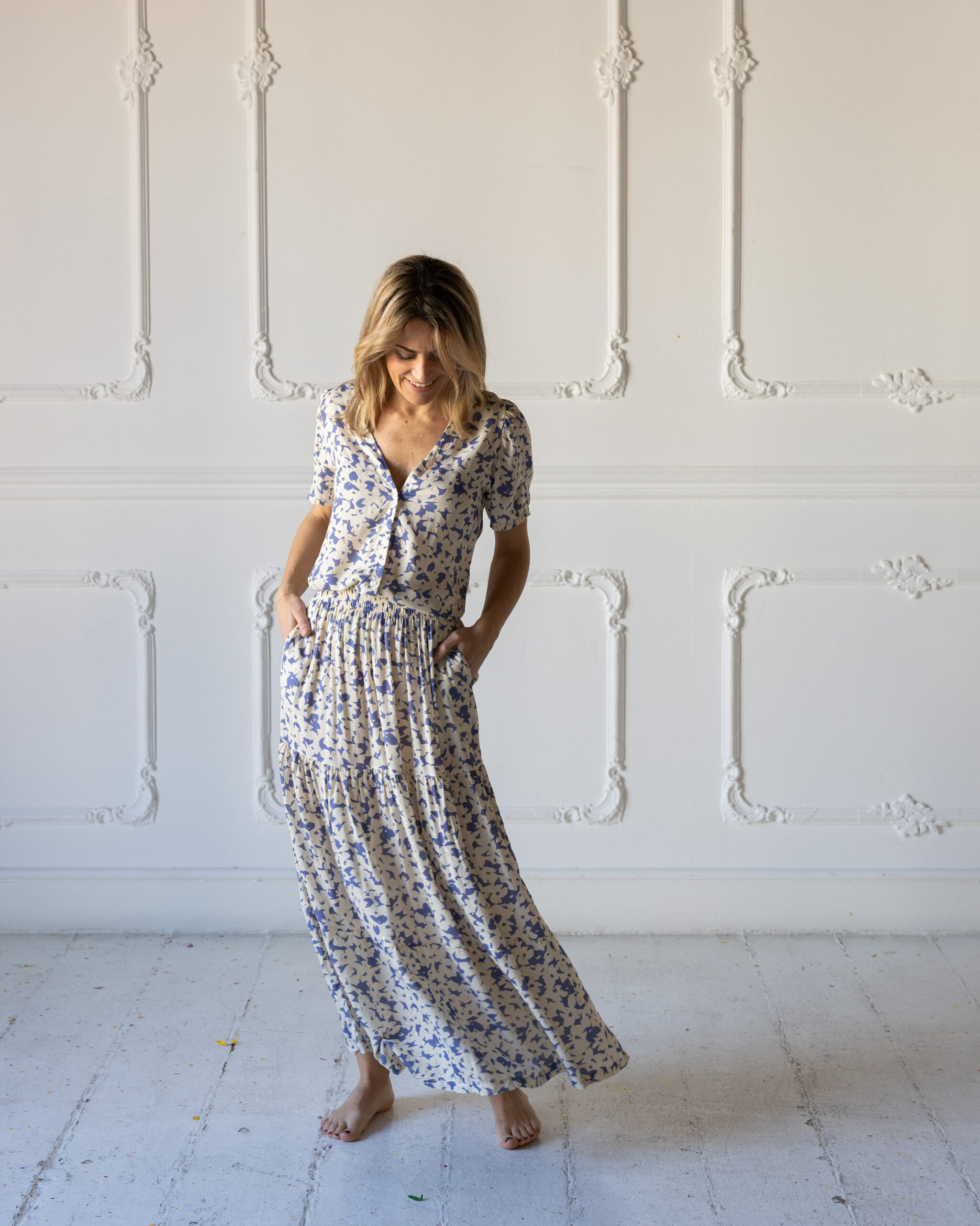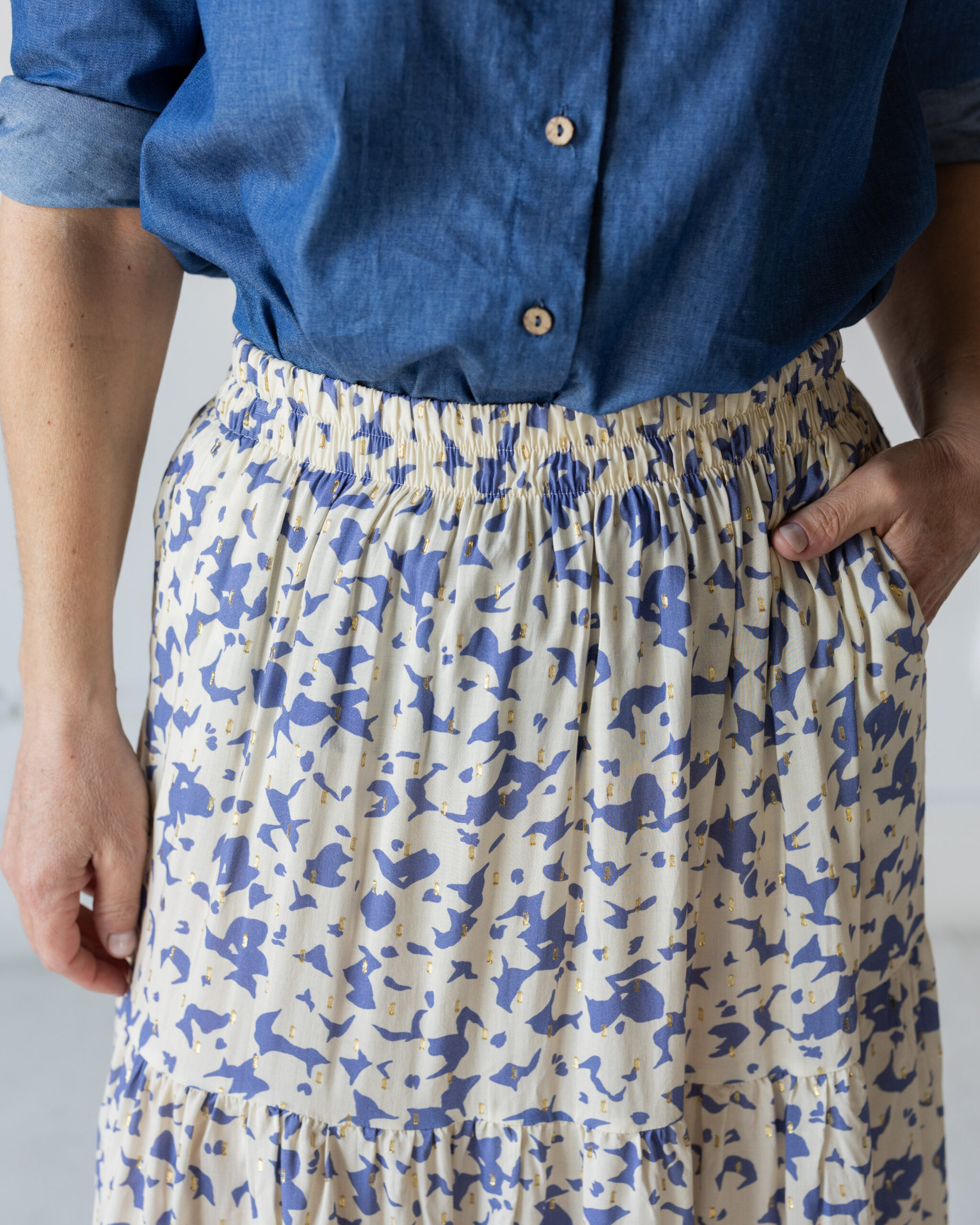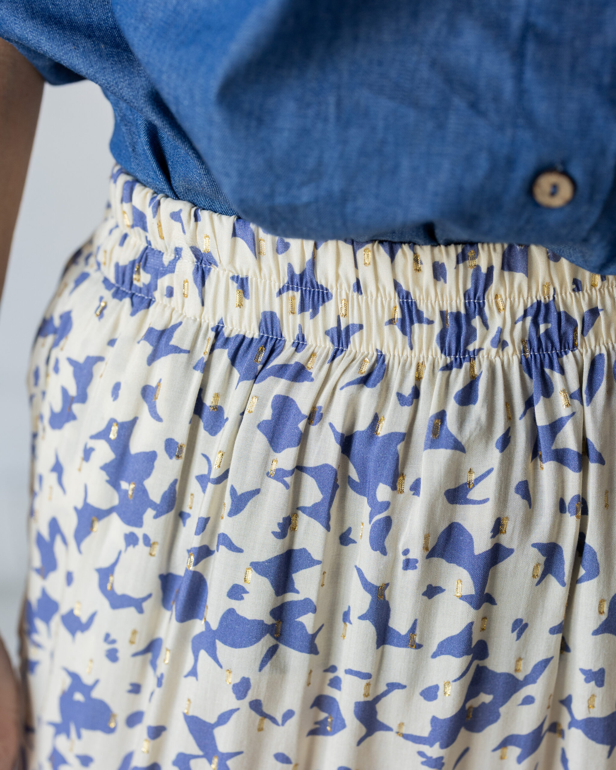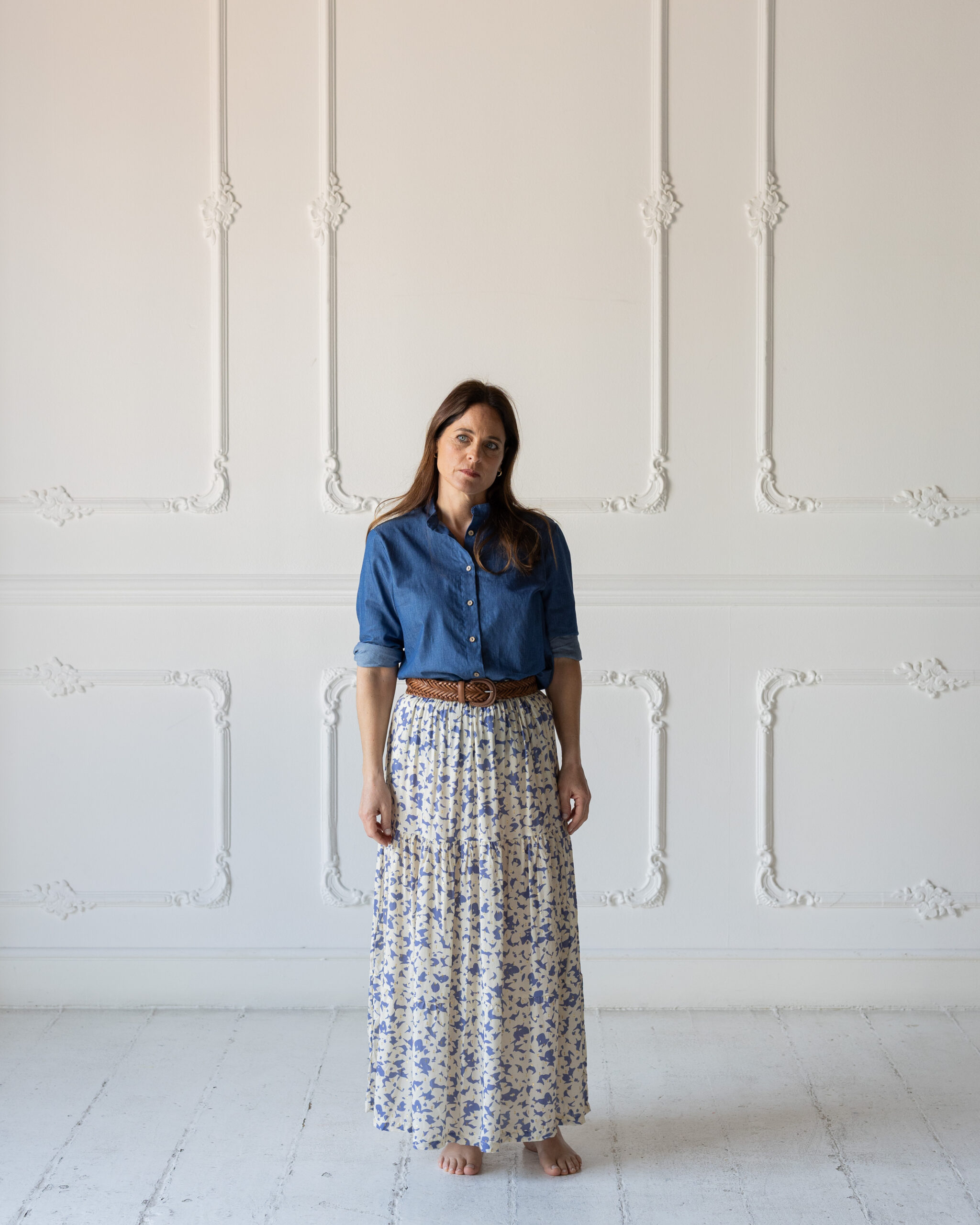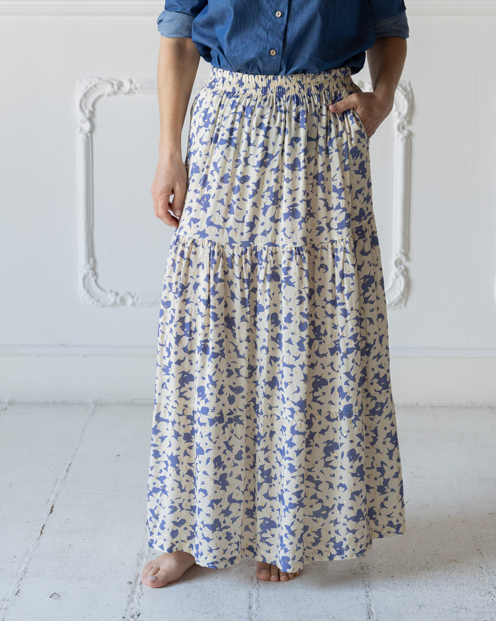 gonna lunga a balze con comodo elastico in vita. Realizzata in taglia unica perché ha ottima vestibilità. Lunghezza 92 cm con scarto artigianale.