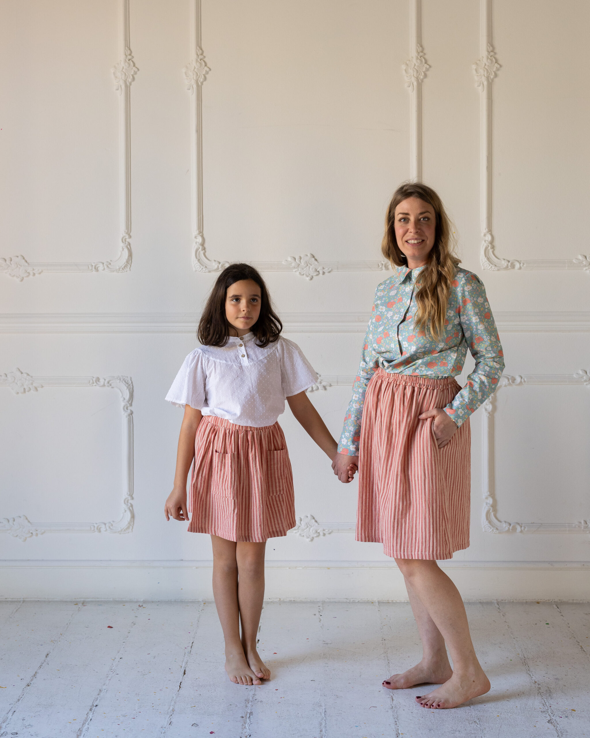 Gonna LevanteGarzato Rigato Rosa Chiaro E Scuro