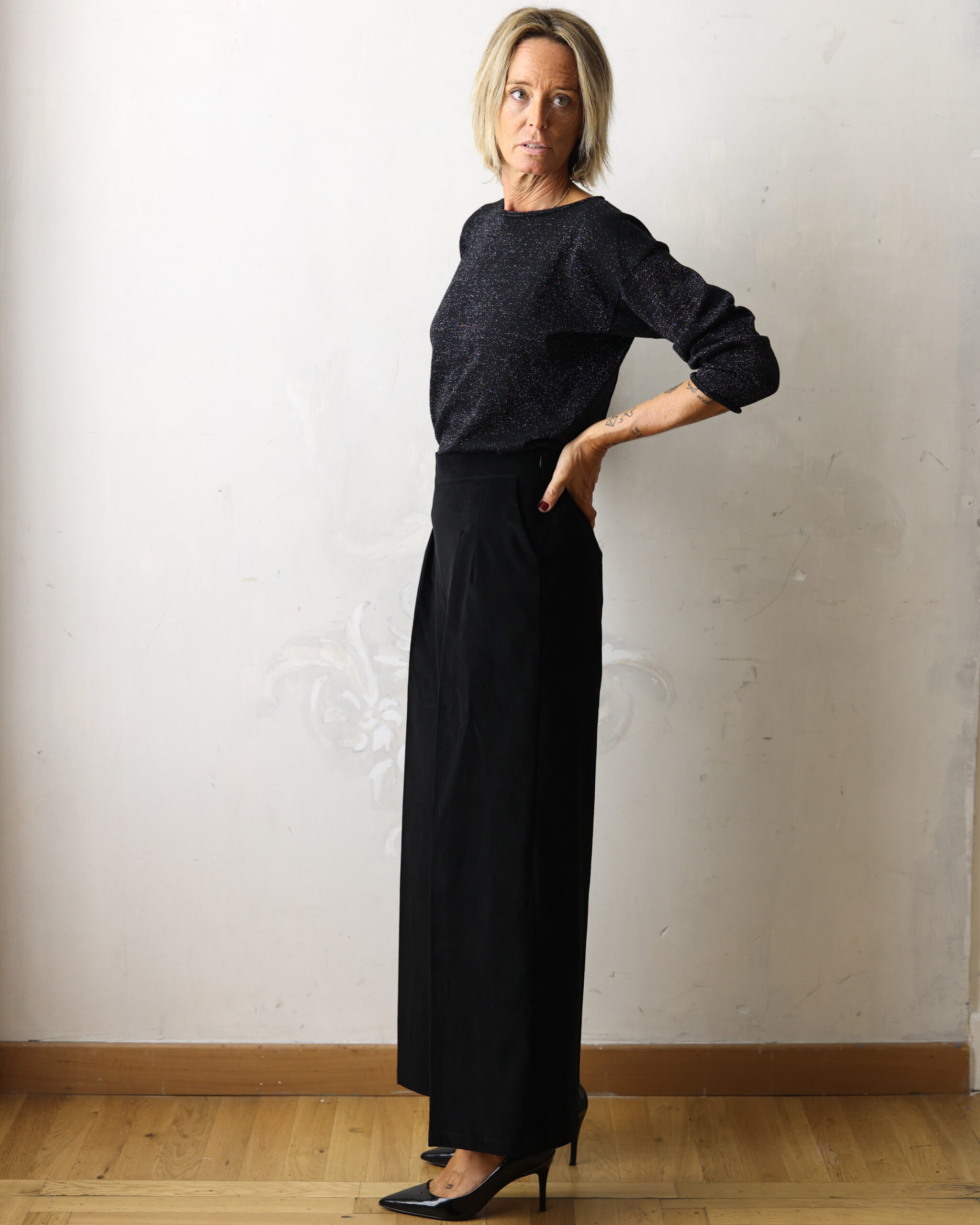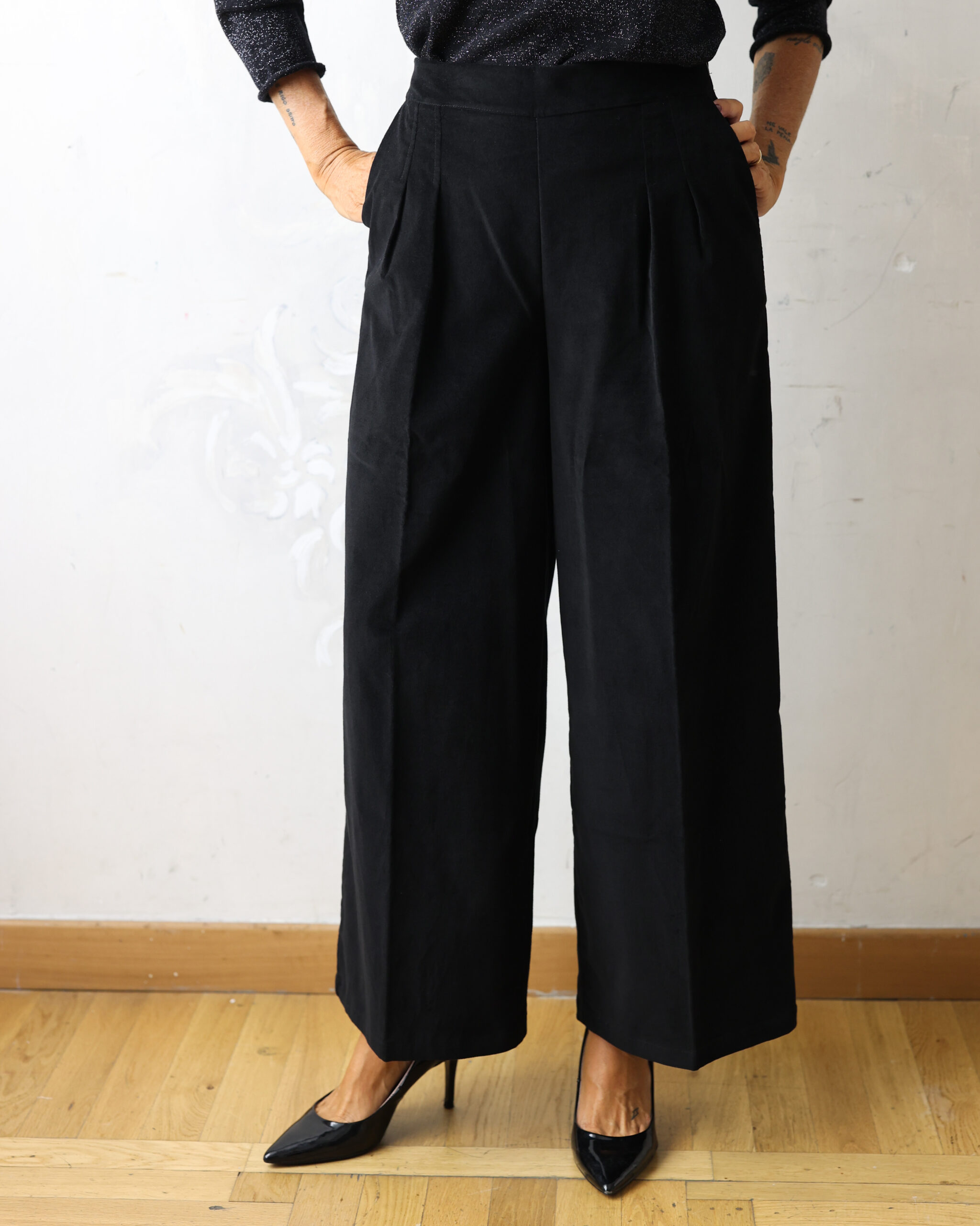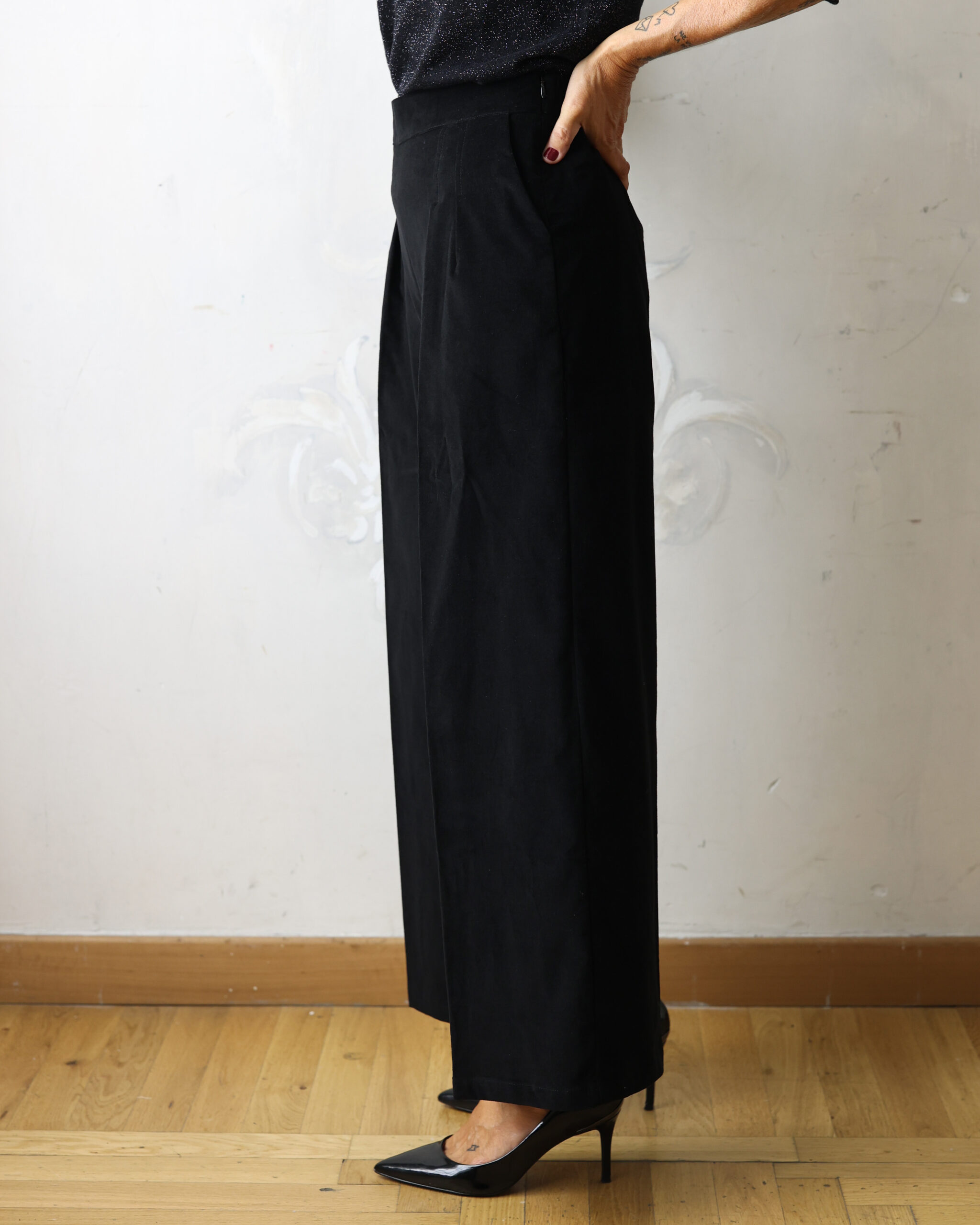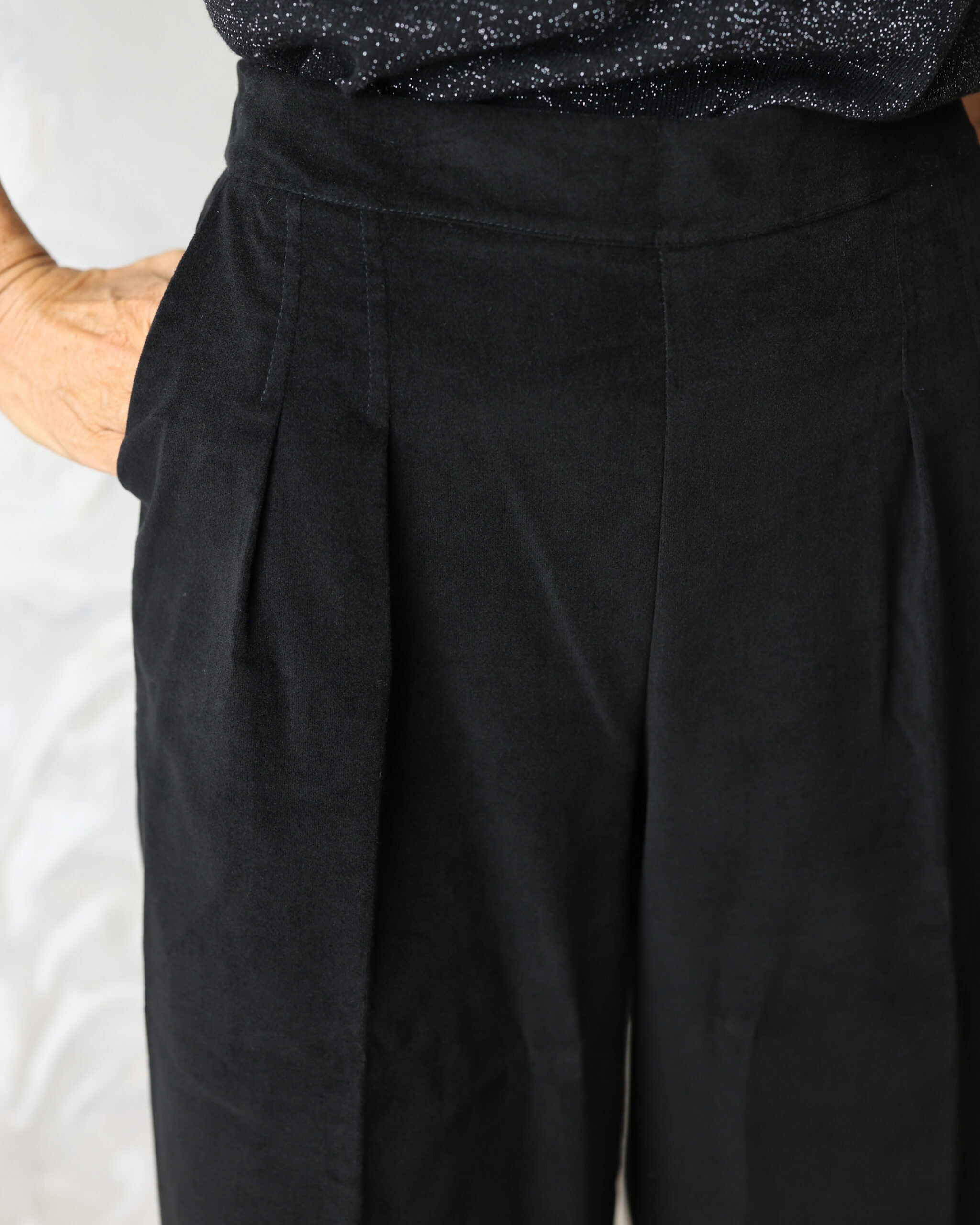 Pantaloni Alfredo – velluto liscio nero capodanno