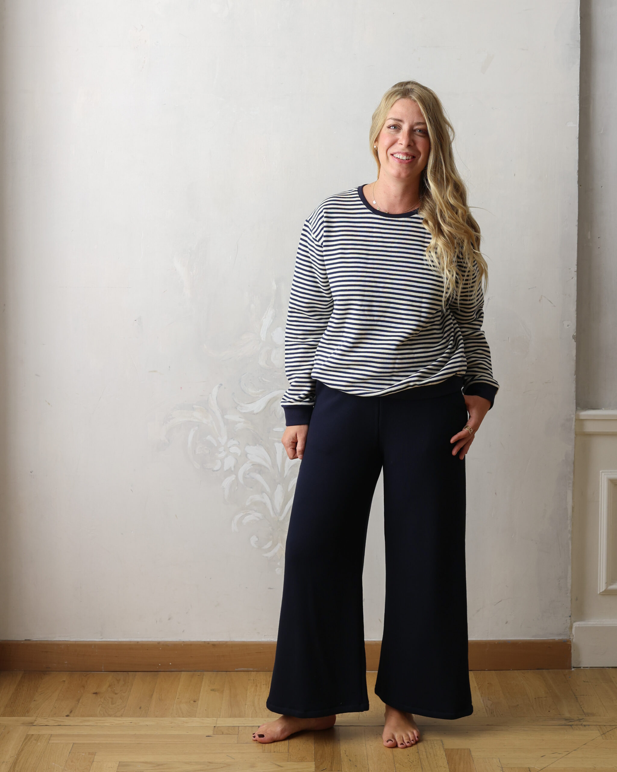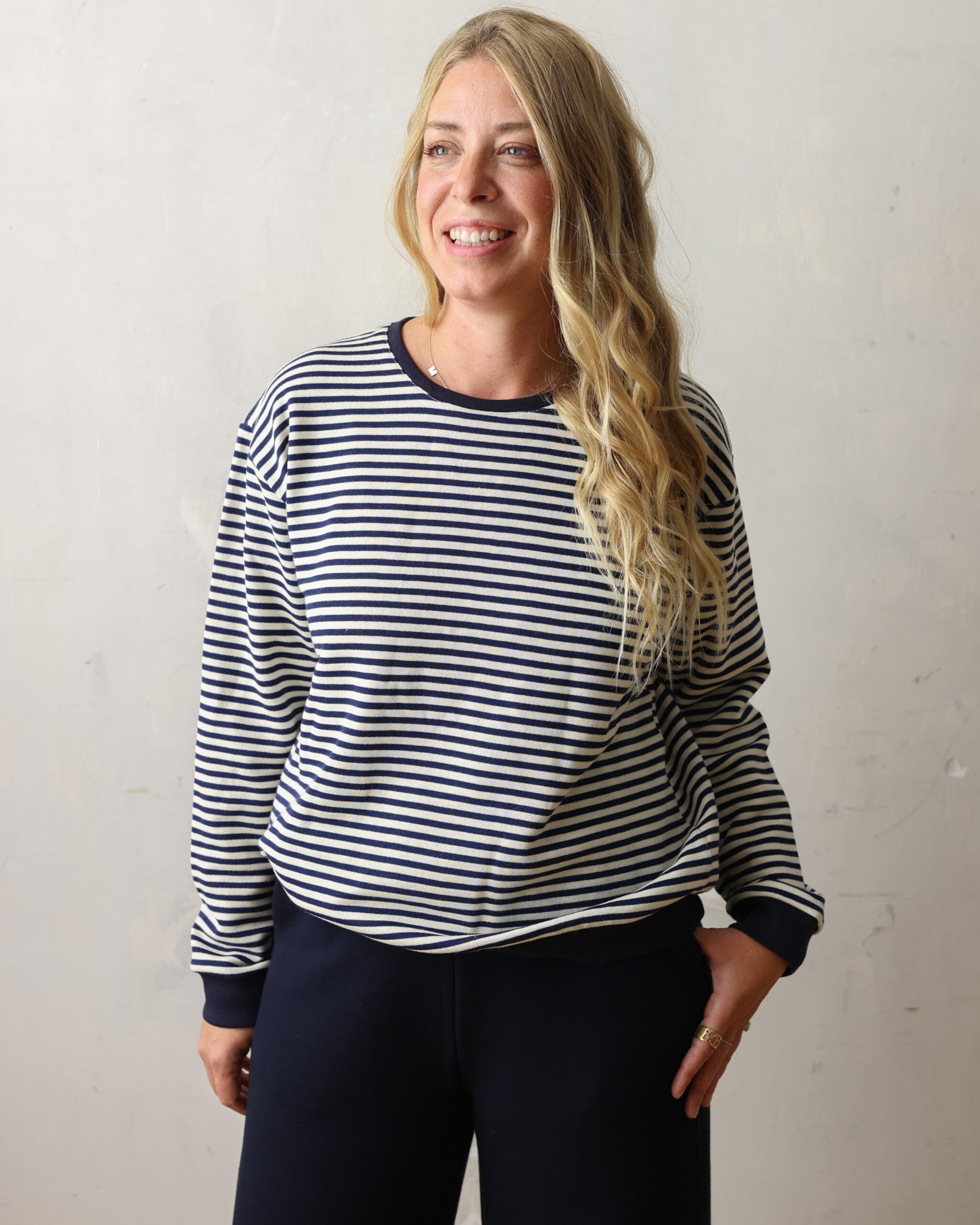 Medium-weight cotton jersey (same fabric as the denim-cream striped sweatshirt from the summer collection).