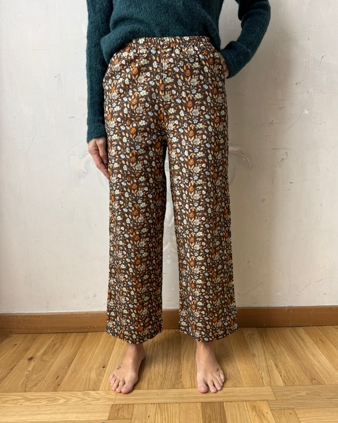 Crop 2.0 ovvero i nostri crop rivisitati: più lunghi di 4 cm e più stretti sul fondo. Realizzati in velluto millerighe peso medio-leggero.