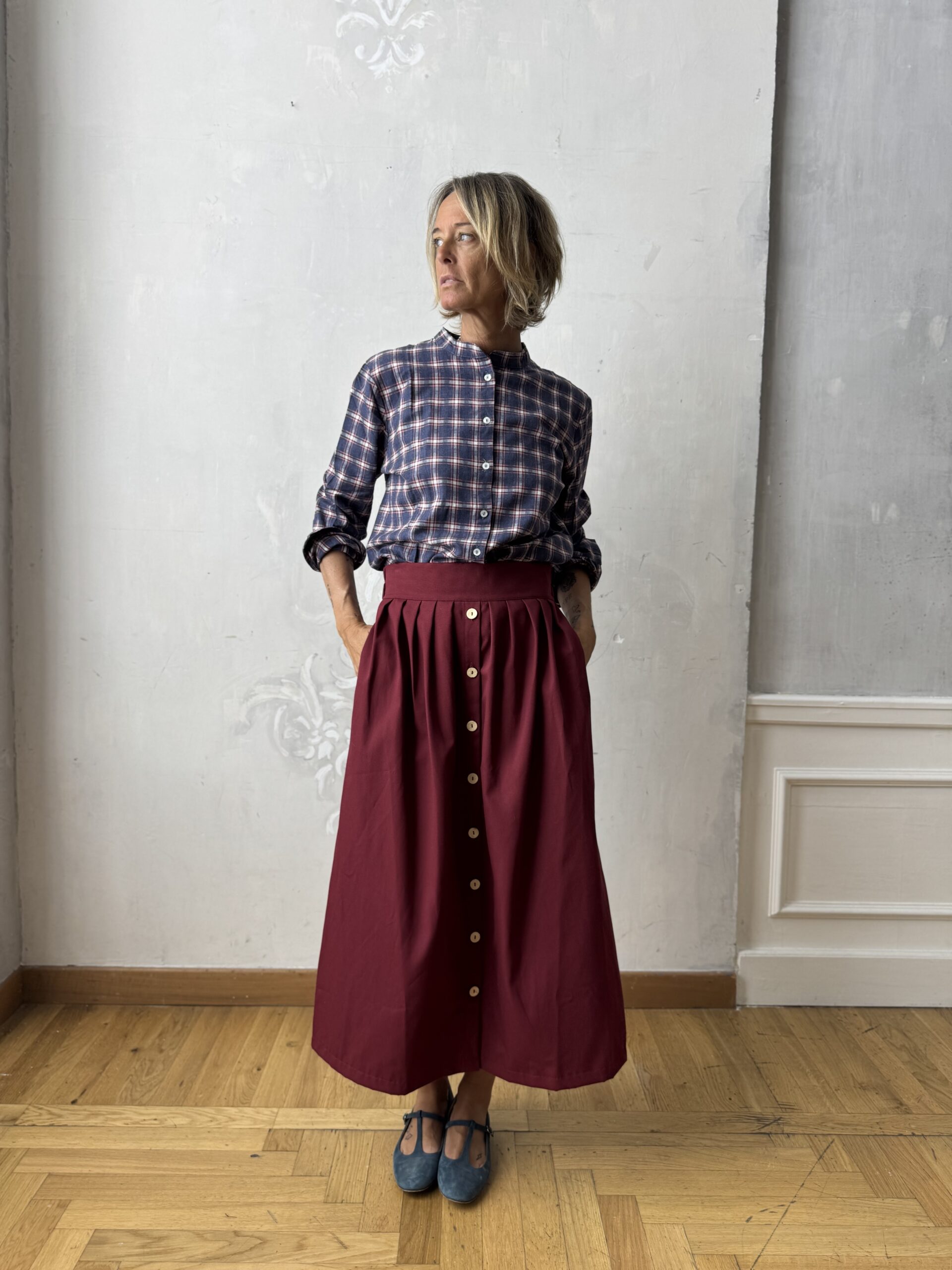 Pratica e comoda, modello midi che arriva appena sopra alla caviglia, da usare tutti i giorni ma anche in serate speciali Con comodo elastico in vita per adattarsi a qualsiasi fisicità.