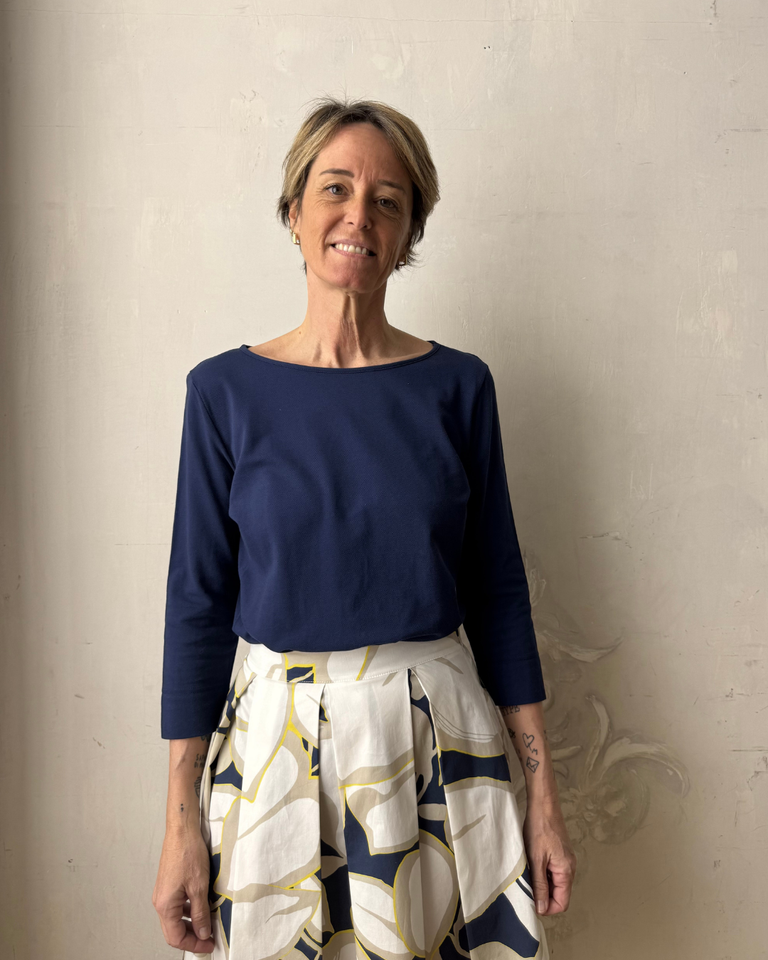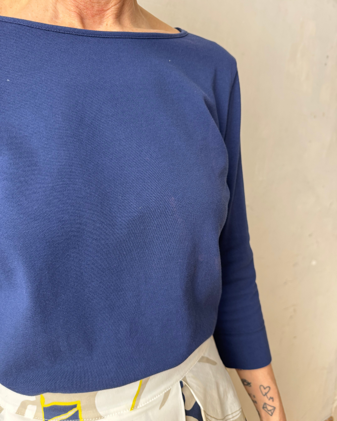 Capo fallato: questa bellissima maglietta in cotone piquet blu ha una macchia che non siamo riusciti a togliere lavando e igienizzando. Venduta a prezzo scontato.